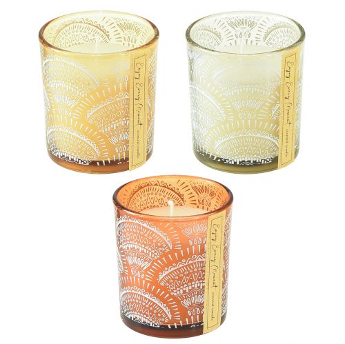 Candele profumate in vetro con coperchio in legno di sandalo H8,5 cm 3 pz