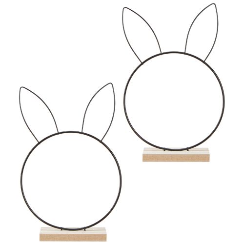 Anneau de décoration lapin métal bois naturel noir Ø20cm 2pcs