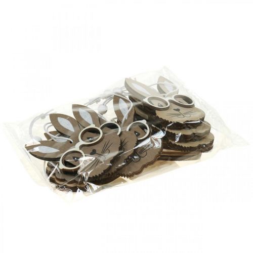 Six lapins avec des lunettes en bois regardent trois carottes en bois – qui pourra les manger ? Dans tous les cas, les six cintres avec des lapins et les trois cintres avec des carottes sont des décorations de Pâques originales pour bouquets et arrangements.Les lapins portent tous de grandes lunettes blanches à larges bords. L'intérieur des oreilles est également peint en blanc. Les lapins en bois, cependant, diffèrent par deux couleurs. Ainsi, vous obtenez trois autres lapins bruns et trois lapins beiges supplémentaires avec des lunettes. Le chou des carottes correspond à la couleur des lapins bruns. Les carottes elles-mêmes sont blanches. Les marques brunes dessus donnent à la carotte un aspect typiquement ridée.