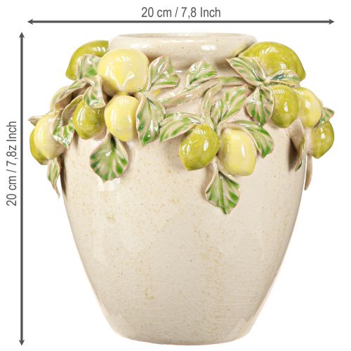 - Bemalte Keramik-Vase in Beige mit Zitronen Dekor