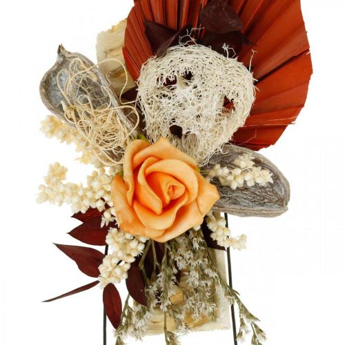 Material: Palmspear, Bell Cup, Plumosum, Ruscus, Cupy-Wurzel, Brachyciton, Trockengräser, Scaletta-Schote, Foam-Rosen, Gitterband
