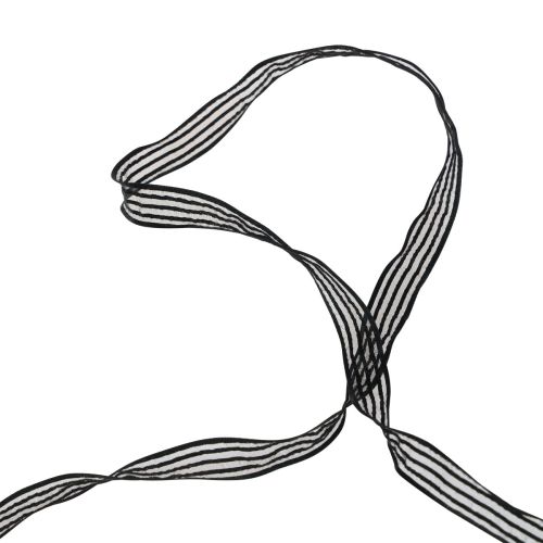 Produktname: Organzaband mit Streifen Geschenkband Schwarz 15mm 20m