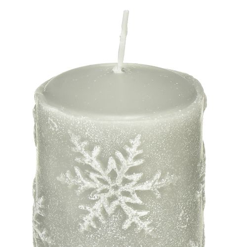 Stumpenkerzen Grau Kerzen Schneeflocken 150/65mm 4 St