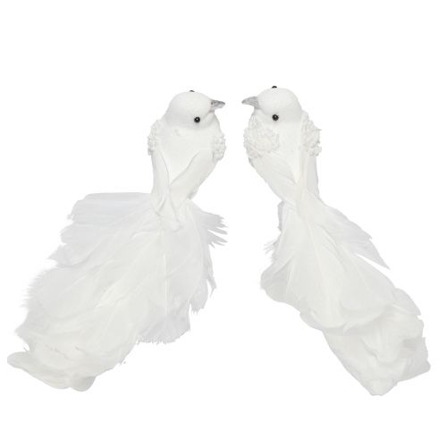 Colombe decorative per matrimonio come coppia di piccioni su clip bianche 22 cm 2 pz