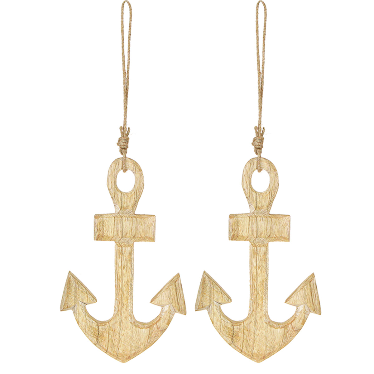 Ancre Déco maritime à suspendre Bois Jute 15x25cm 2pcs