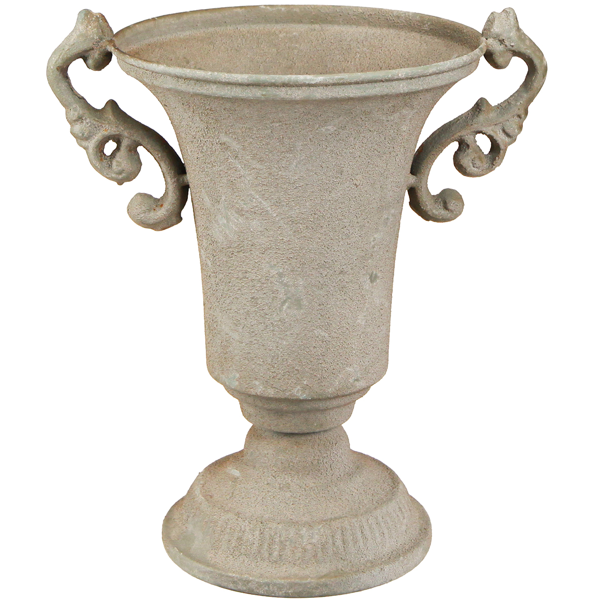 Vintage Antik Pokal Grau Metall Shabby Chic Dekoration H22,5cm