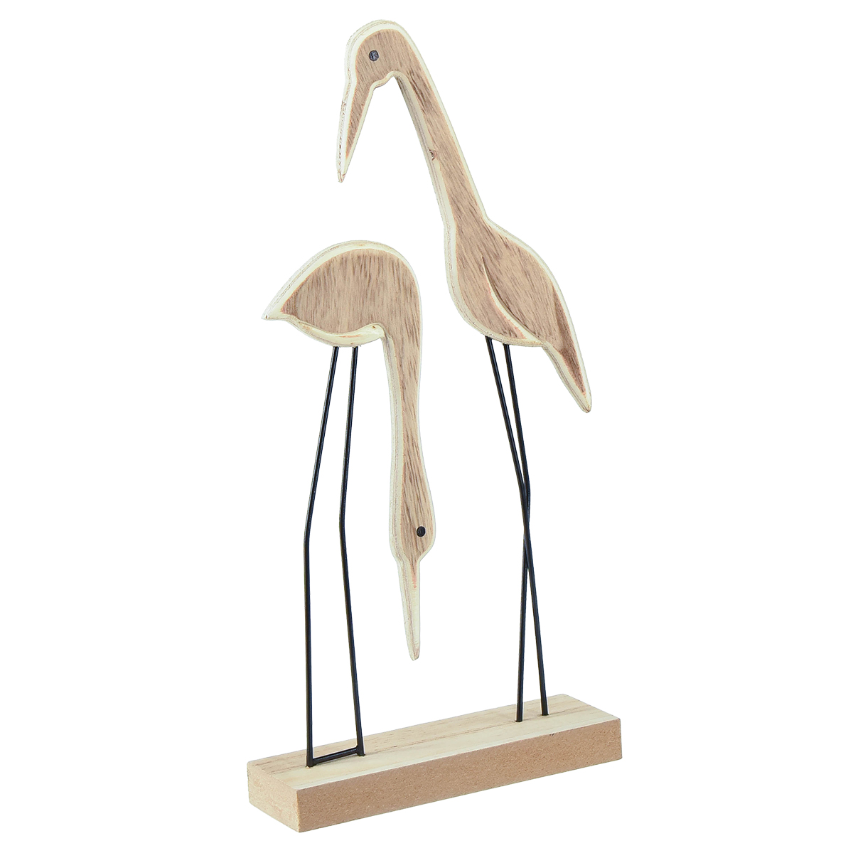 Support figurine en bois paire de grues naturel 27,5×13cm 2 pcs