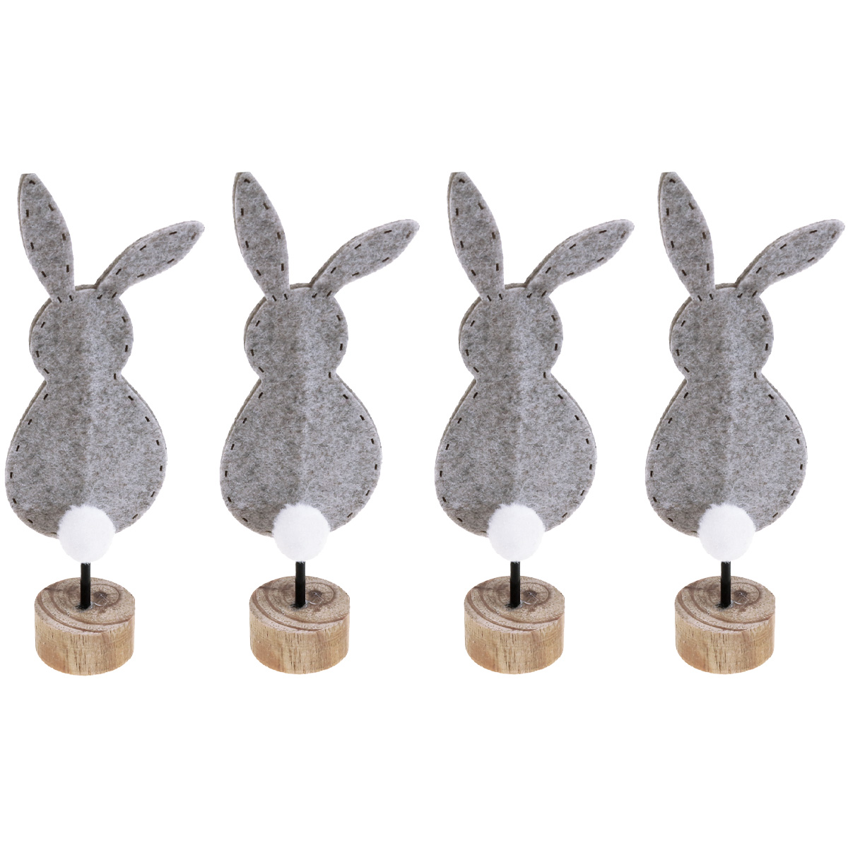 Décoration de table sur pied décoration lapin de Pâques feutre gris 28,5 cm 4 pcs