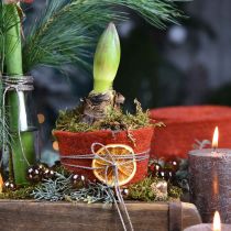 Selbstverständlich können Sie das Filzband darüber hinaus als trendigen Tischläufer sowie zum Umwickeln von Blumentöpfen und –kistchen, Vasen und Körben einsetzen. Auch in Kombination mit den handgedrehten Flausch Kordeln oder den schmaleren Dochtfäden ergeben sich dann zahlreiche Möglichkeiten zur Dekoration, nicht nur daheim, sondern auch in einem Gastraum oder im Schaufenster.