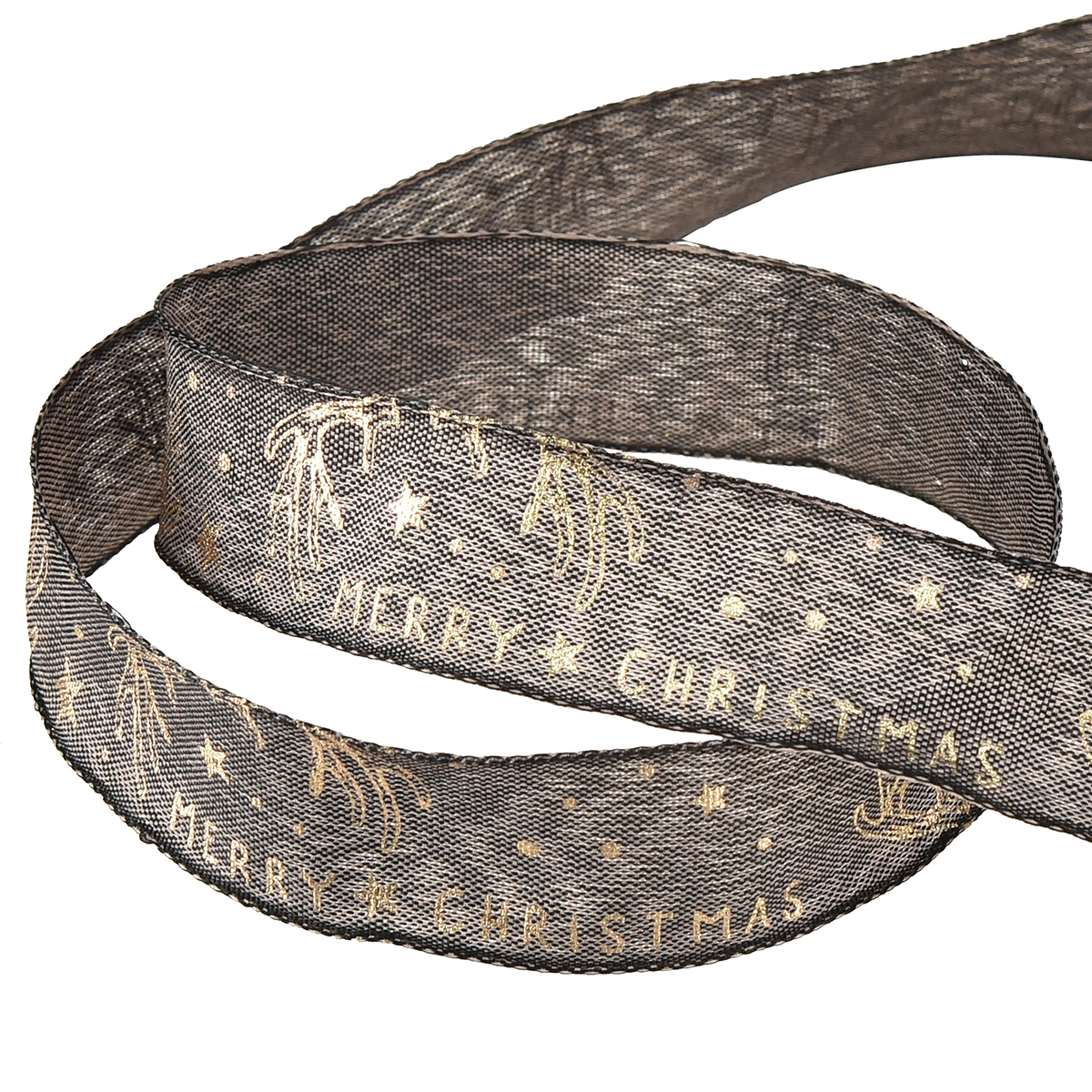 Décoration de Noël classique et élégante : ruban de Noël marron aux accents dorés