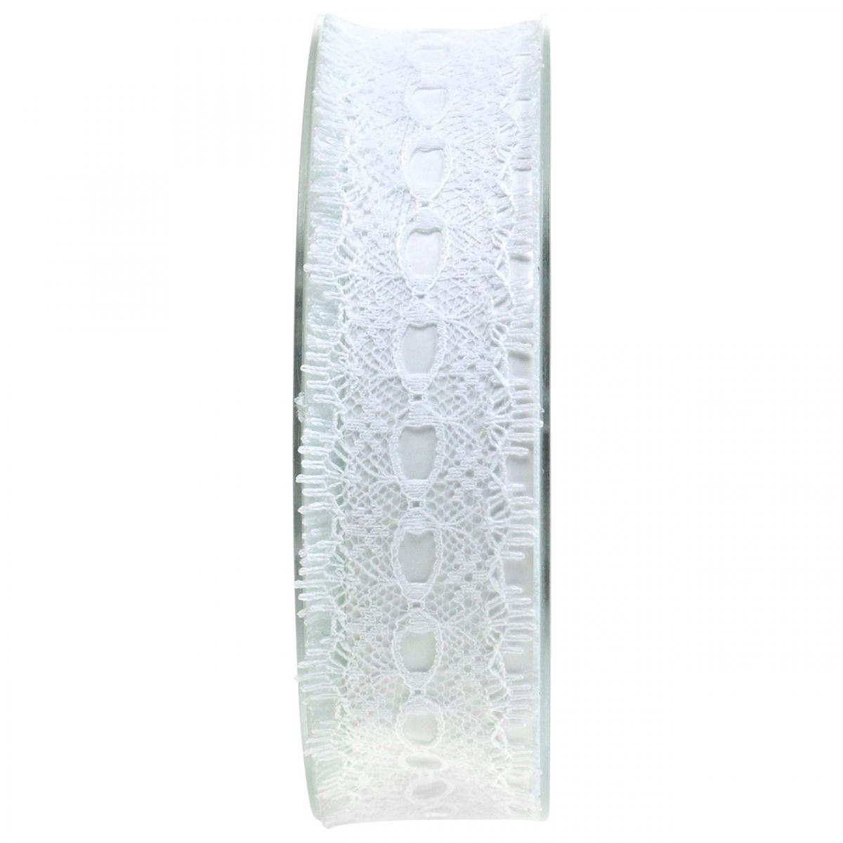 Ruban avec dentelle, décoration mariage, ruban déco Blanc W35mm L20m