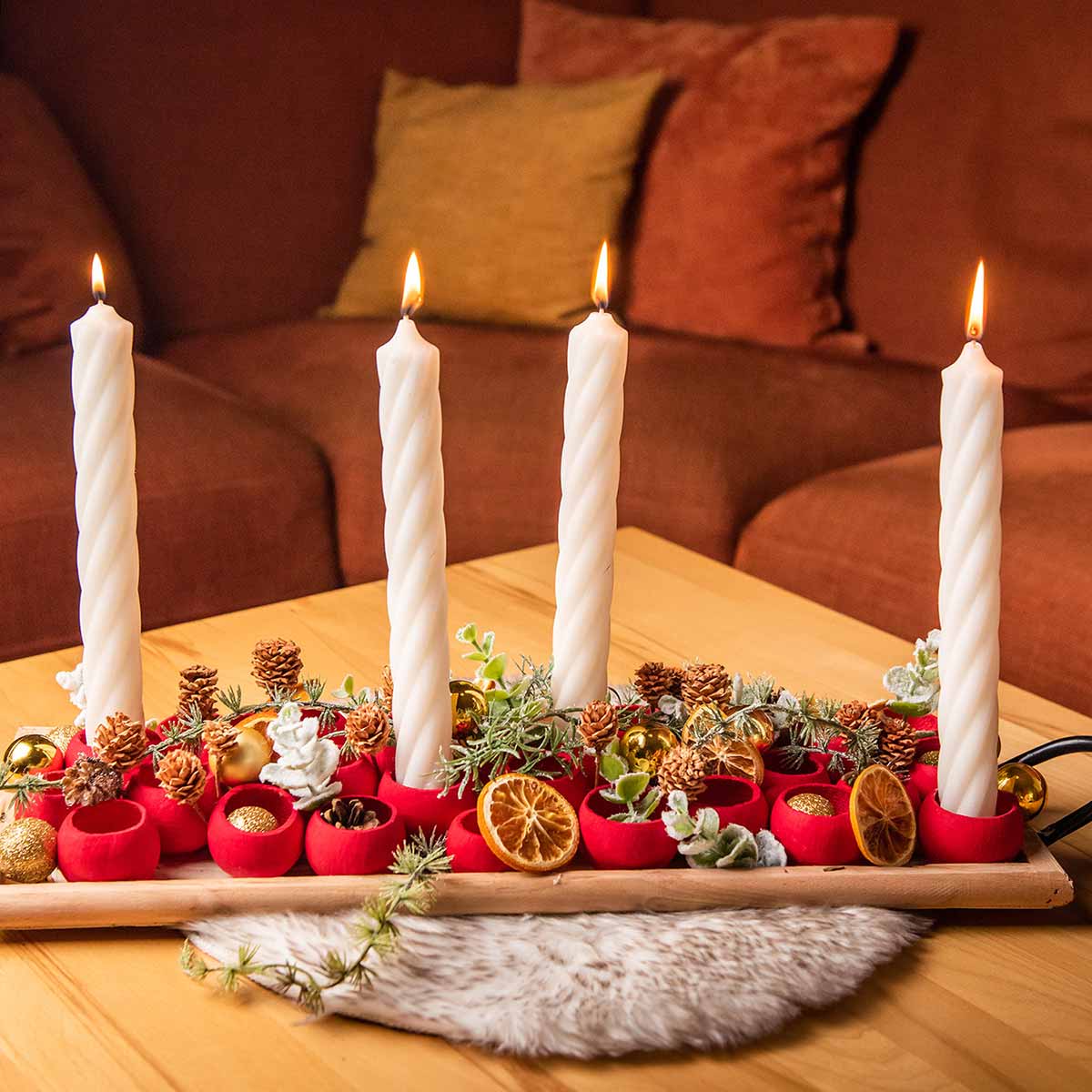 Avec ce petit fruit fruit évidé teinté en rouge que l’on appelle Bell Cup, vous avez de quoi garnir une coupe décorative et créer de ravissants arrangements de table ! Les coques ligneuses sont ouvertes sur le dessus et très solides. Vous pourrez par exemple les remplir de mousse florale pour y piquer des plantes séchées à l’aide de fil métallique. Il est même possible de fixer fermement les coupes en bois sur un support pour ensuite les remplir de cire liquide et d’une mèche afin de les transformer en adorables petites bougies qui diffuseront une atmosphère des plus agréables.Avec sa couleur rouge, la Bell Cup convient aussi merveilleusement bien aux décorations de Noël et avec un peu de colle, elle pourra par exemple être placée sur une couronne de l’Avent. E si vous cherchez encore un accessoire original pour votre arbre de Noël, alors percez un trou à travers la coque pour y passer un fil que vous permettra de la suspendre sur le sapin.