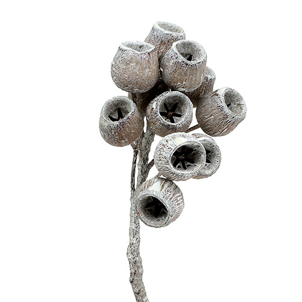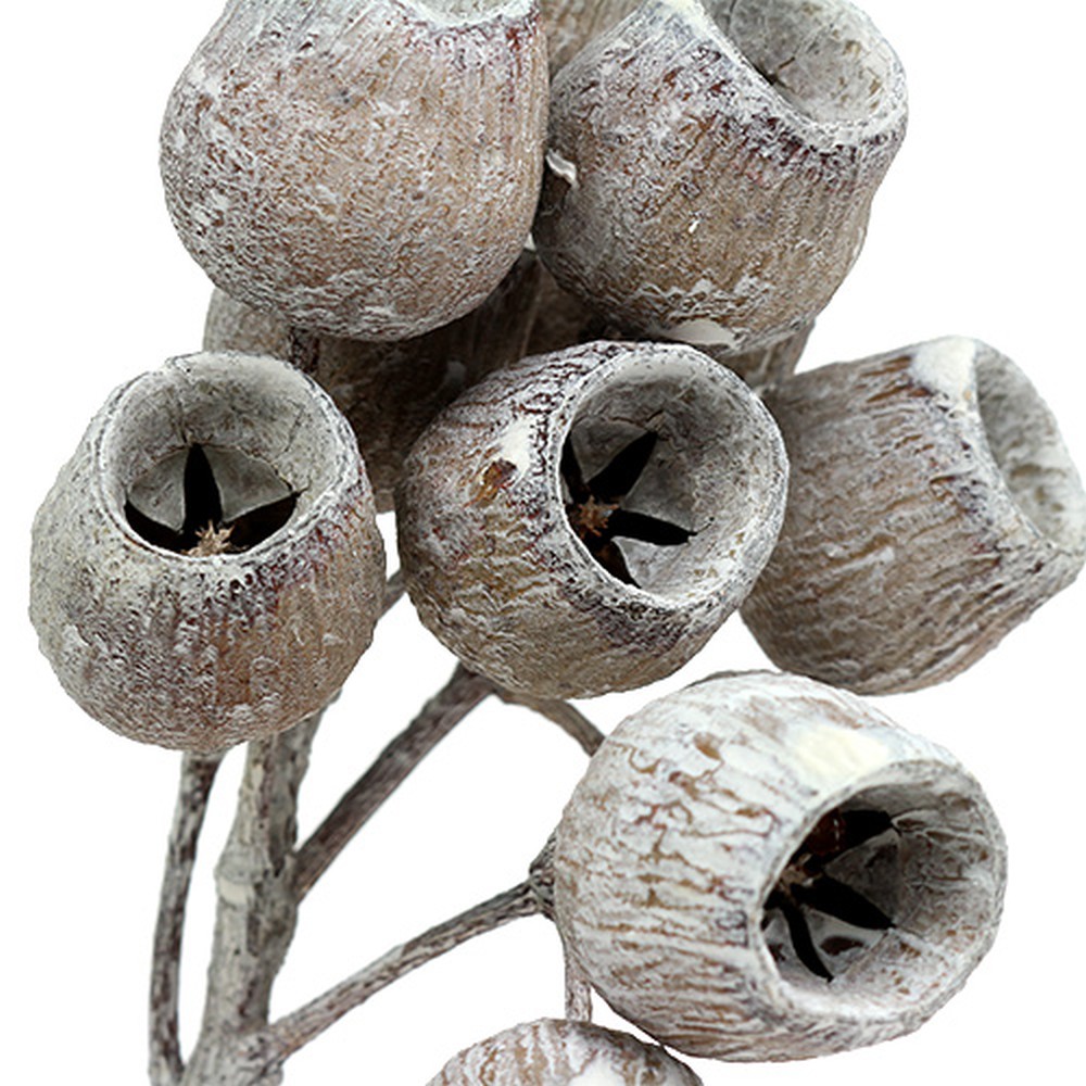 Der weißgewaschene Bellgum Zweig befindet sich in einem Paket zu 20 Stück und hat eine Stiellänge von etwa 20 bis 25 Zentimeter. An einem Ast befinden sich circa 5 bis 7 Glockenfrüchte, die einen Durchmesser von etwa 3 Zentimeter und eine Größe von ungefähr 4 Zentimeter erreichen. So können Sie auch nur die kleinen Glocken von den Zweigen abtrennen und für viele aufregende Dekorationen nutzen. Probieren Sie somit mal, Ihren Adventskranz damit zu verzieren!