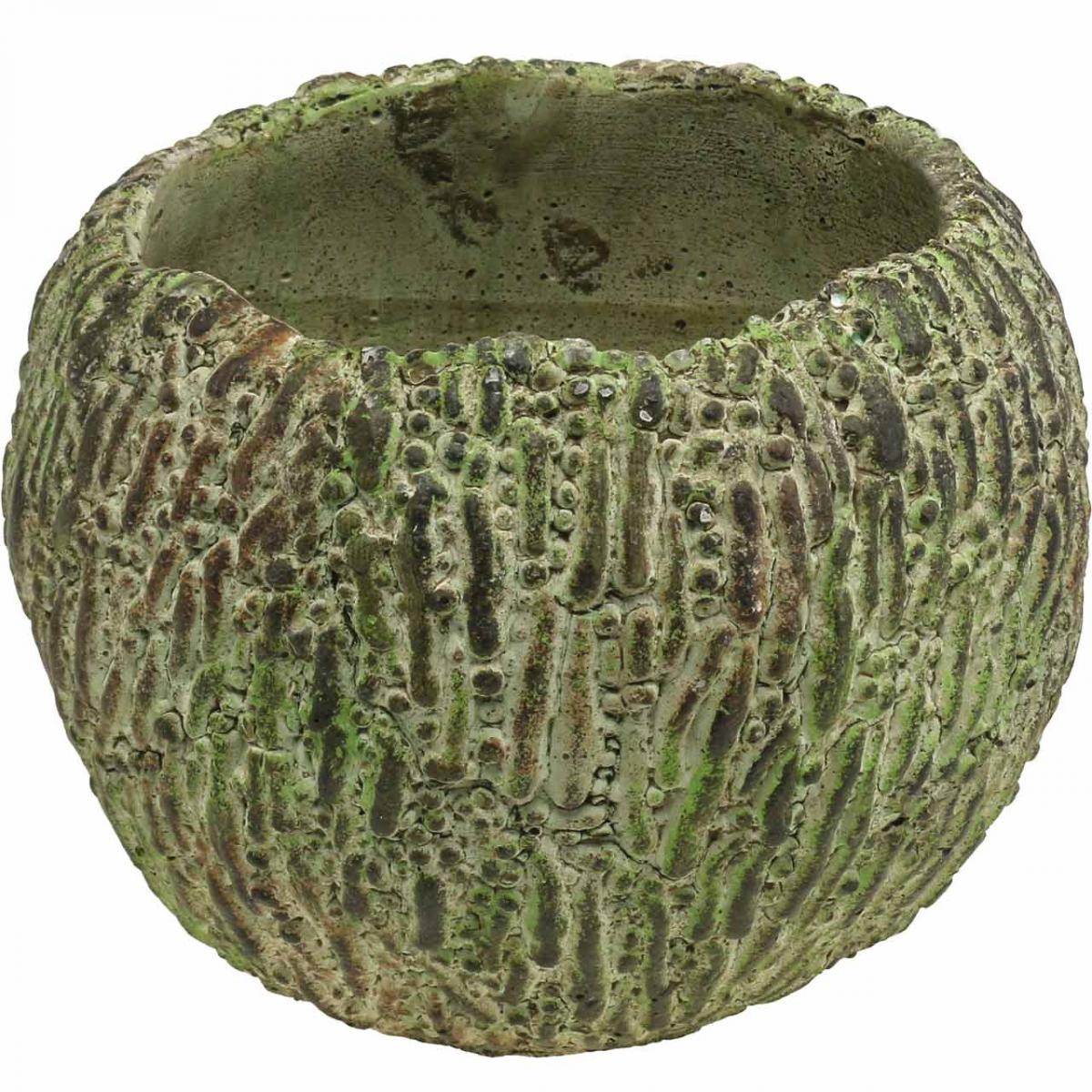 Pot de fleurs rond en béton, aspect antique, vert et marron, Ø15,5 cm