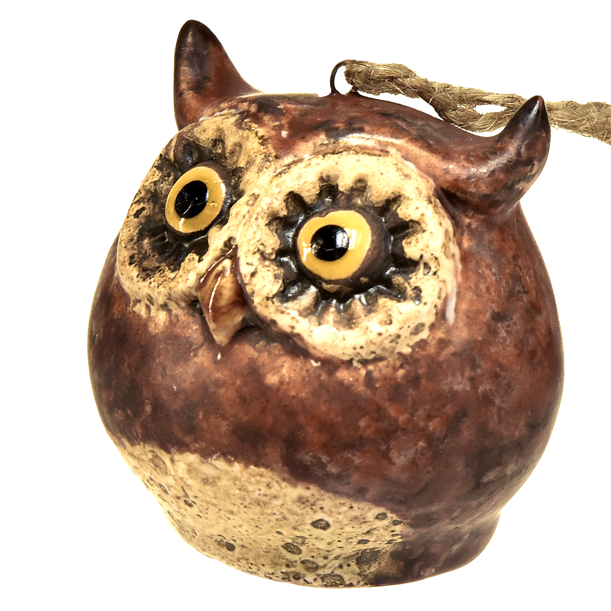 - Tre pendenti decorativi a forma di gufo in diverse tonalità di marrone
