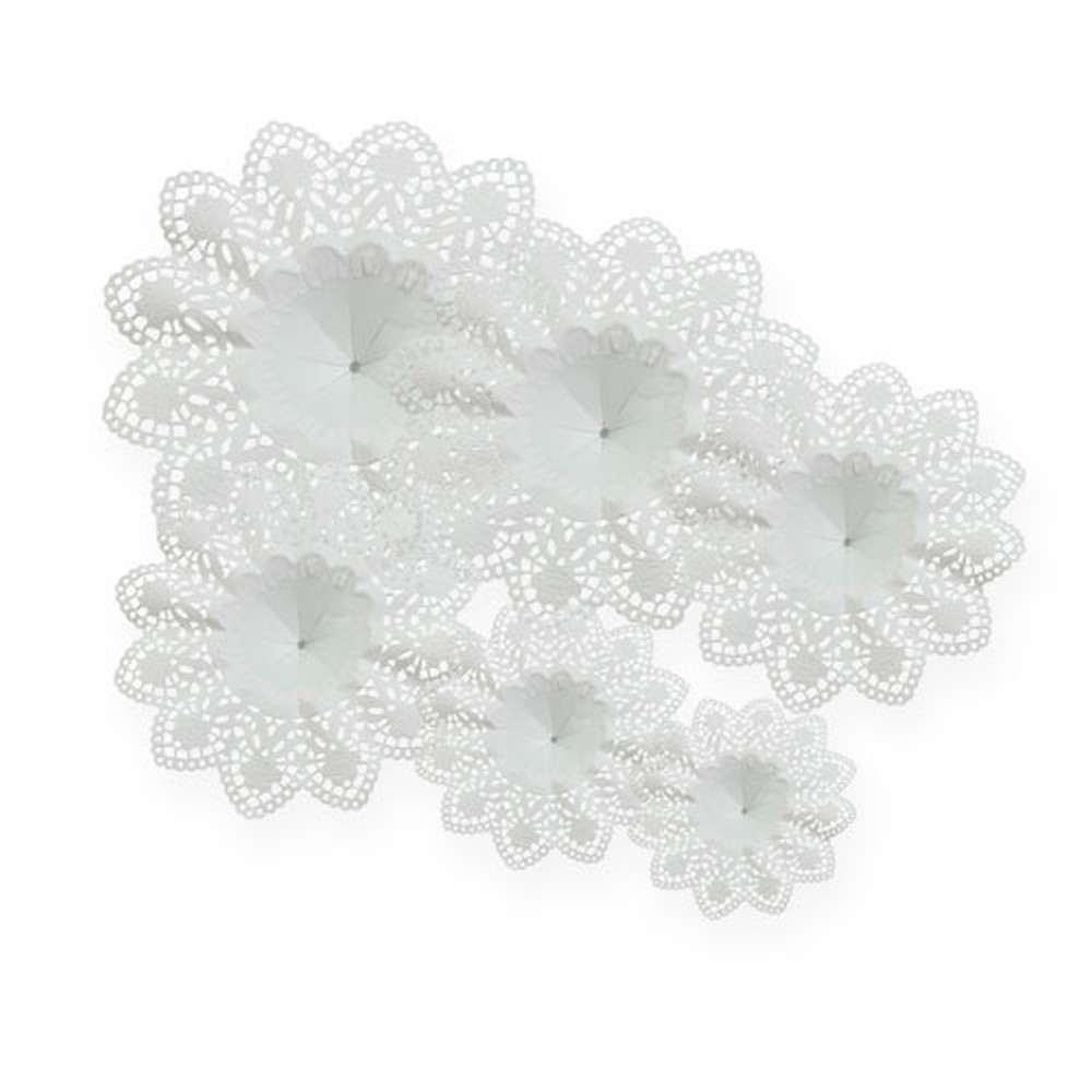 Nos manchettes de style Biedermeier sont toutes livrées en paquets de 25 pièces et ce quelle que soit leur taille; cette dernière se base sur le diamètre extérieur du produit et nous vous les proposons avec un diamètre extérieur pouvant aller de 7 à 30 cm environ. Pour choisir la taille souhaitée, merci d’ouvrir le menu déroulant situé sous le mot „Diamètre“ et de sélectionner la taille de votre manchette !