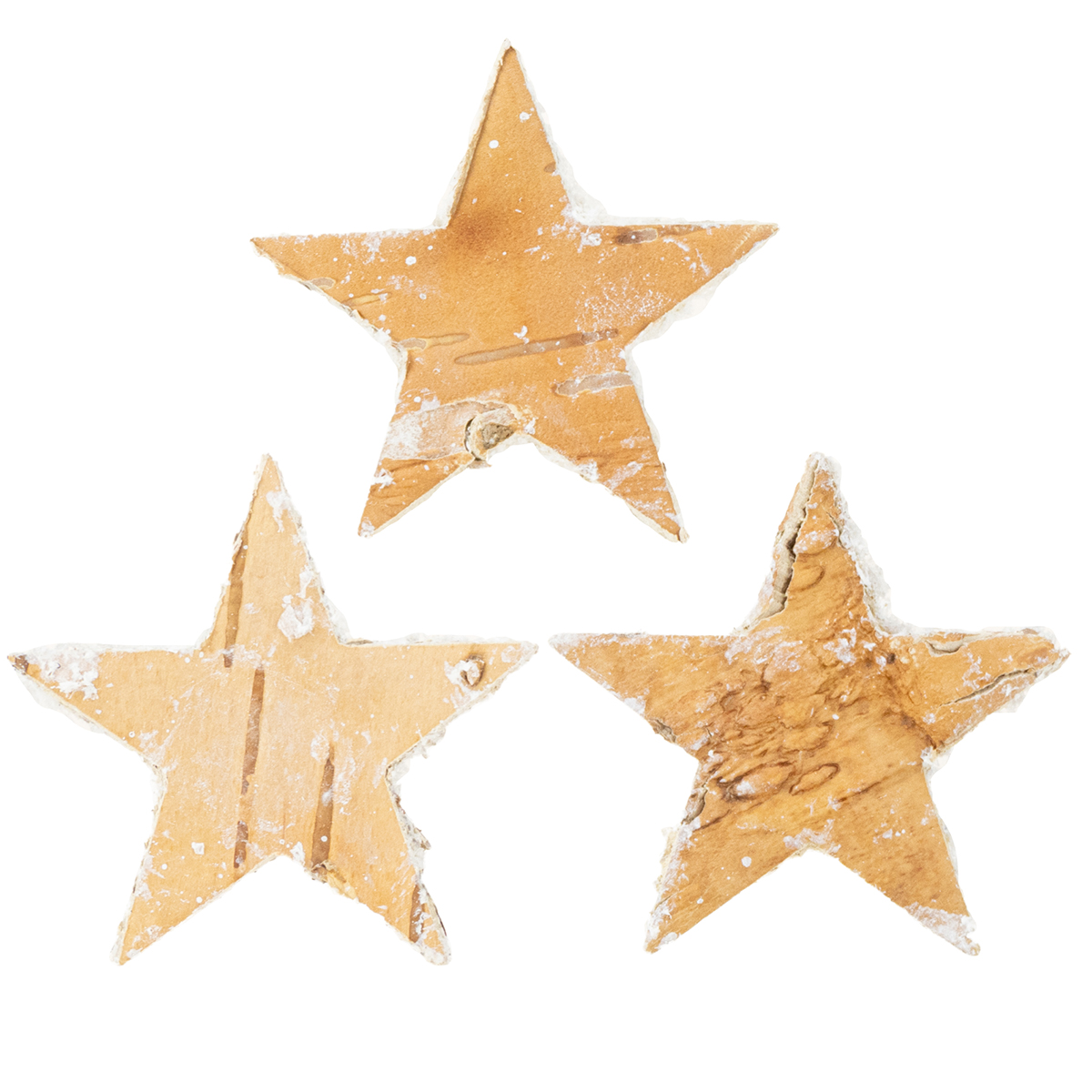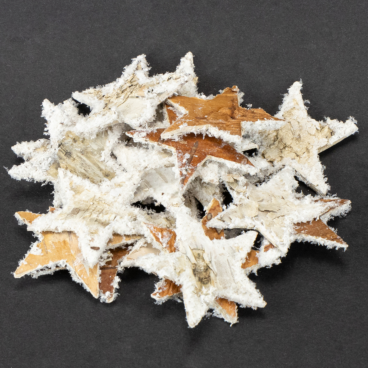 Stelle di betulla, innevate, 4 cm, naturali, 60 pezzi