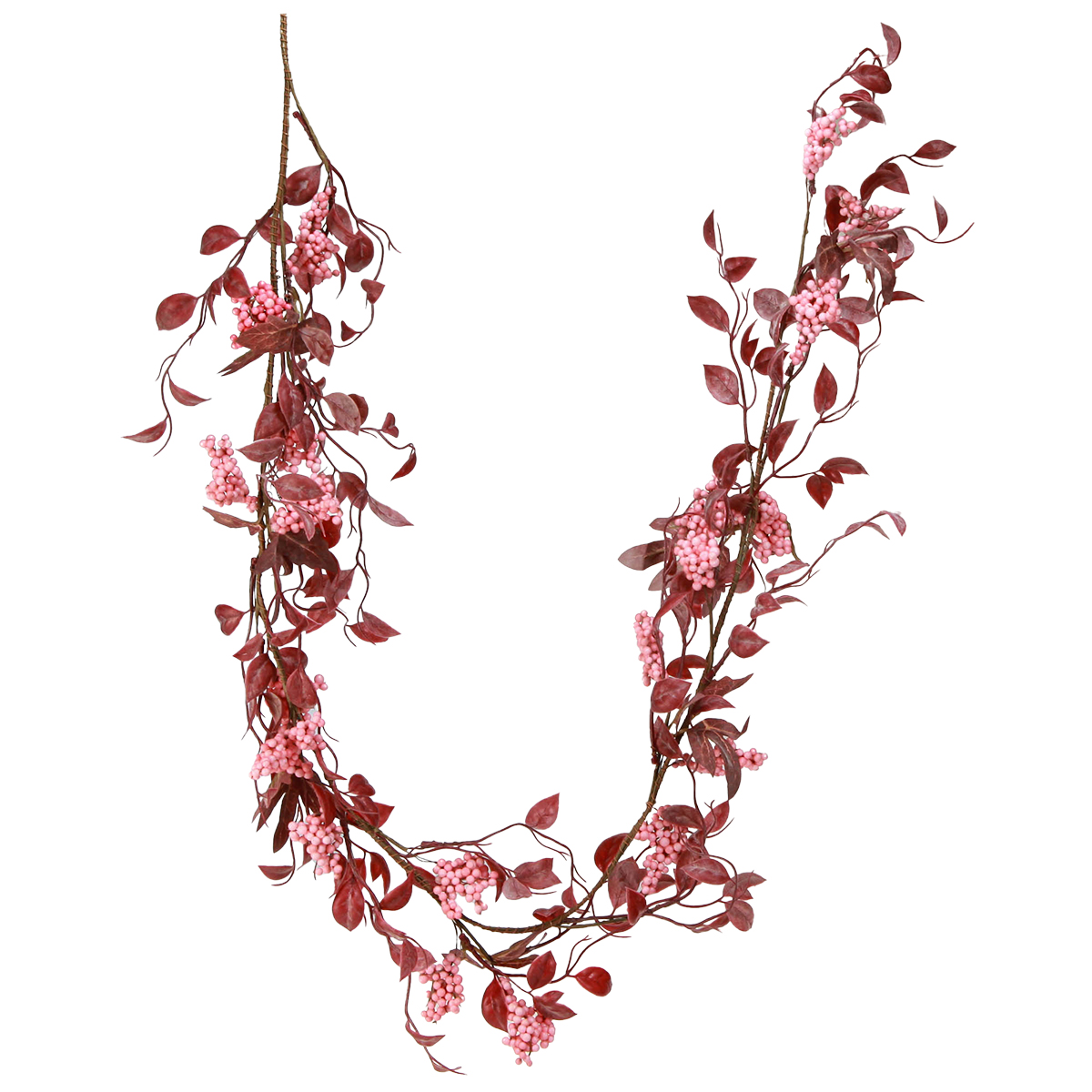 - Guirlande courte de feuilles aux baies rose clair et feuilles rose foncé