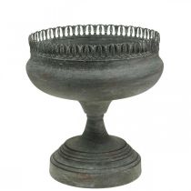 Il secchio in metallo lucido con manici in corda ha un diametro di circa 16 centimetri ed è alto circa 15 centimetri. Puoi anche usare il secchio come decorazione originale da giardino scavando a metà sdraiandolo e organizzando una composizione floreale, figure da giardino o candele per una festa in giardino all'interno.