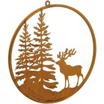 Dekoring für Weihnachten, Rentier im Ring, Weihnachtsmann mit Geschenk, Metalldeko Edelrost Ø18cm 2er-Set