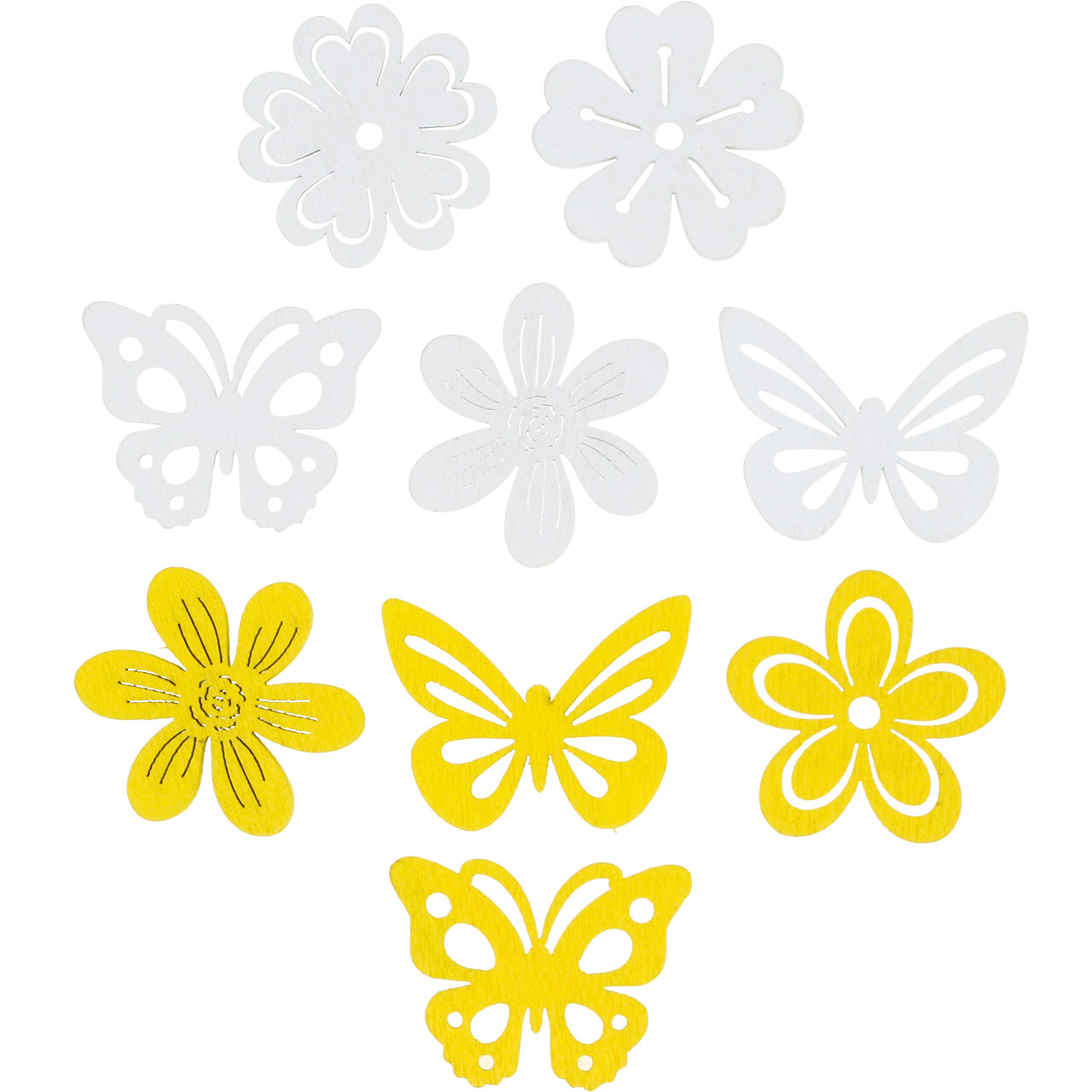 Blumen und Schmetterlinge zum Streuen Gelb, Weiß Holz Streudeko Frühlingsdeko 72 St