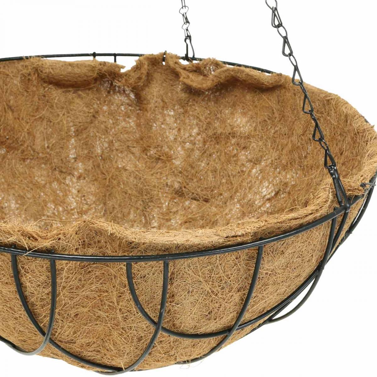 Produktname:Blumenampel, Pflanzschale aus Kokosfasern Metall Natur, Schwarz H20,5cm Ø40,5cm