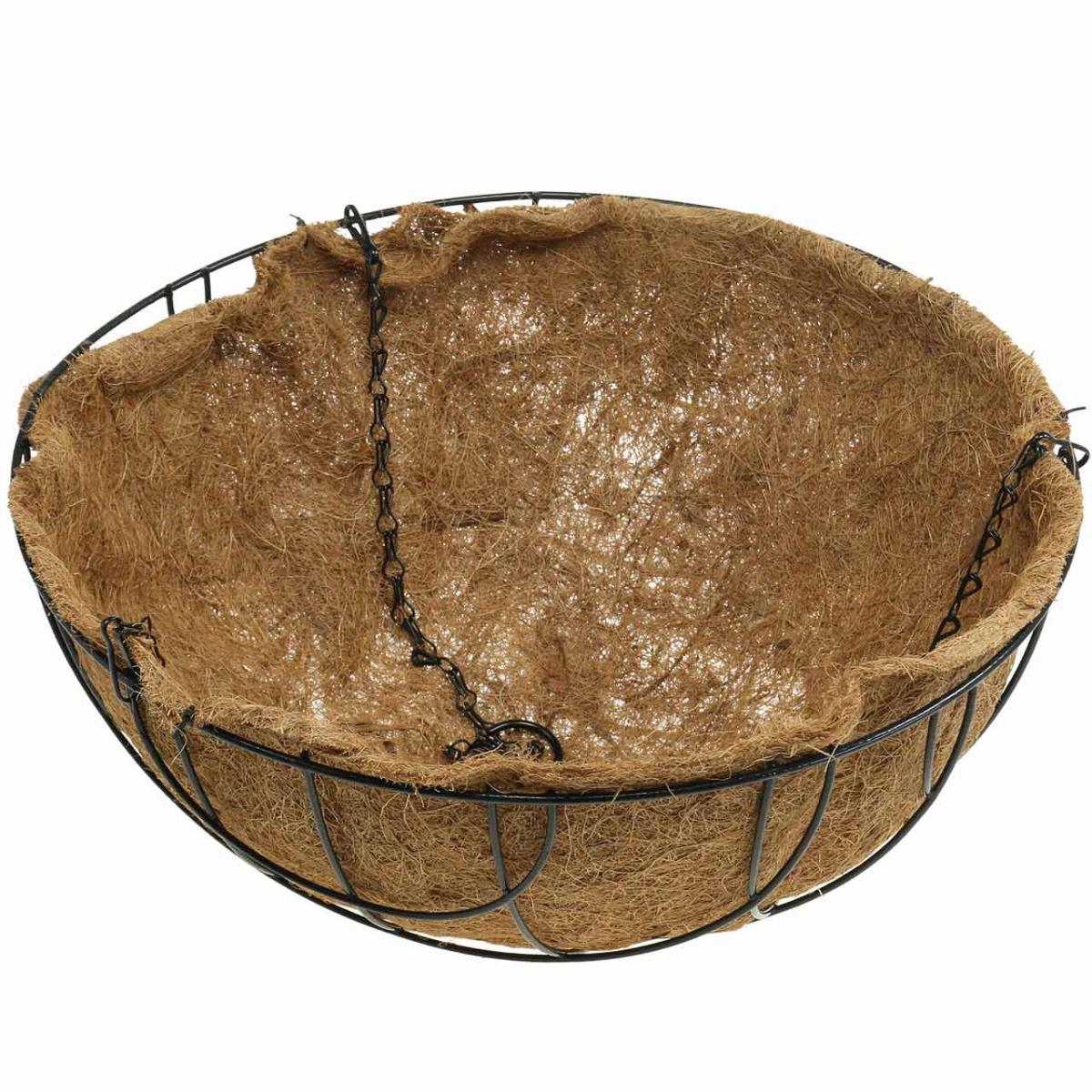 Blumenampel, Pflanzschale aus Kokosfasern Metall Natur, Schwarz H20,5cm Ø40,5cm