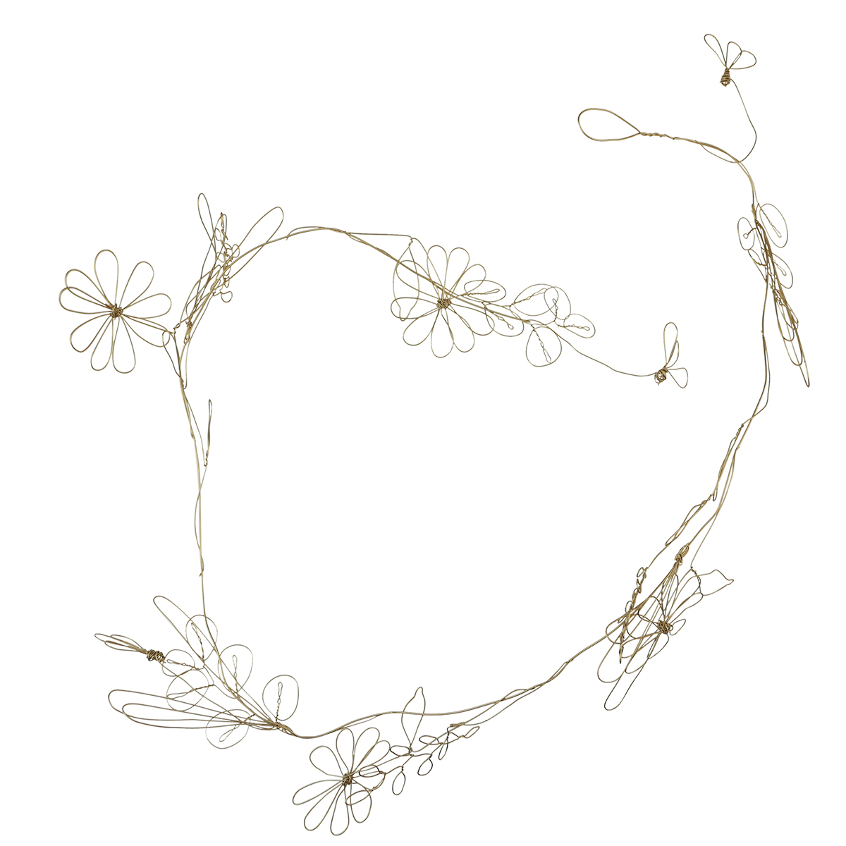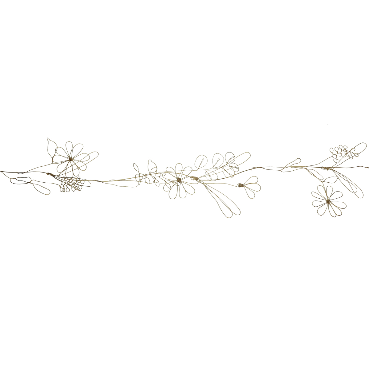 Produktname: Blumengirlande Metall Gold, Deko-Hänger Wiesenmotiv, Flexibel Gestaltbar, Wanddeko, Sommer-Dekoration 110cm