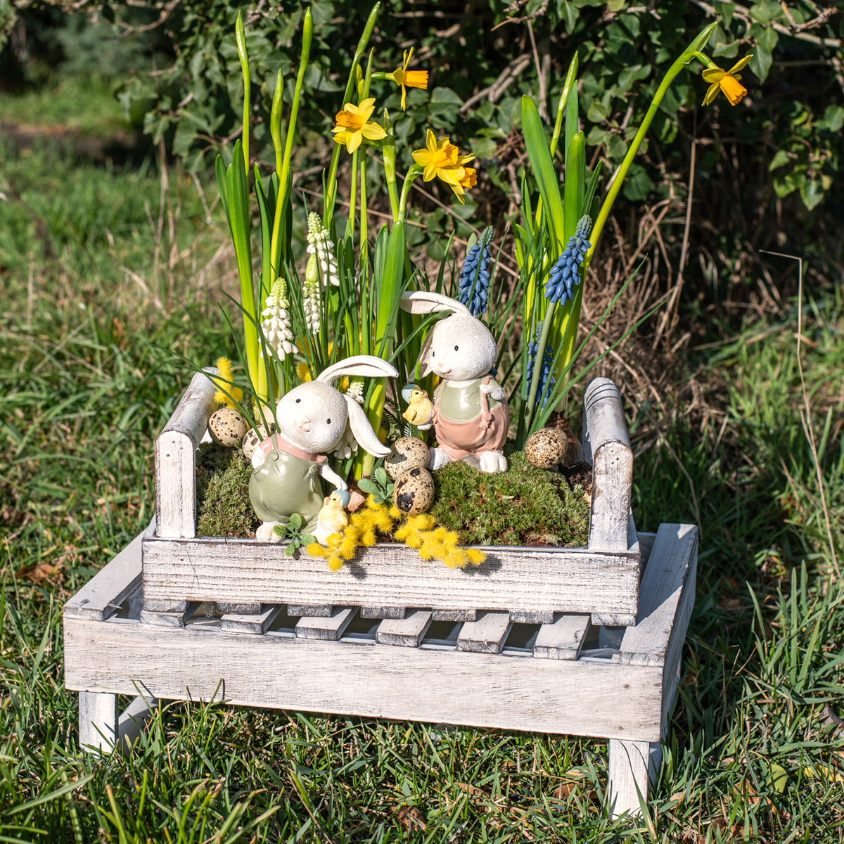 In questa fioriera dal look shabby chic di tendenza, le tue piante troveranno un bel posto per l'appartamento, il balcone o in giardino. Le due fioriere in legno hanno una forma rettangolare e oblunga, ma sono di dimensioni diverse.L'aspetto shabby chic è creato dall'applicazione sporadica del colore bianco e si possono anche vedere abbastanza bene le venature del legno. Il fascino rustico di questa fioriera non può essere trascurato.