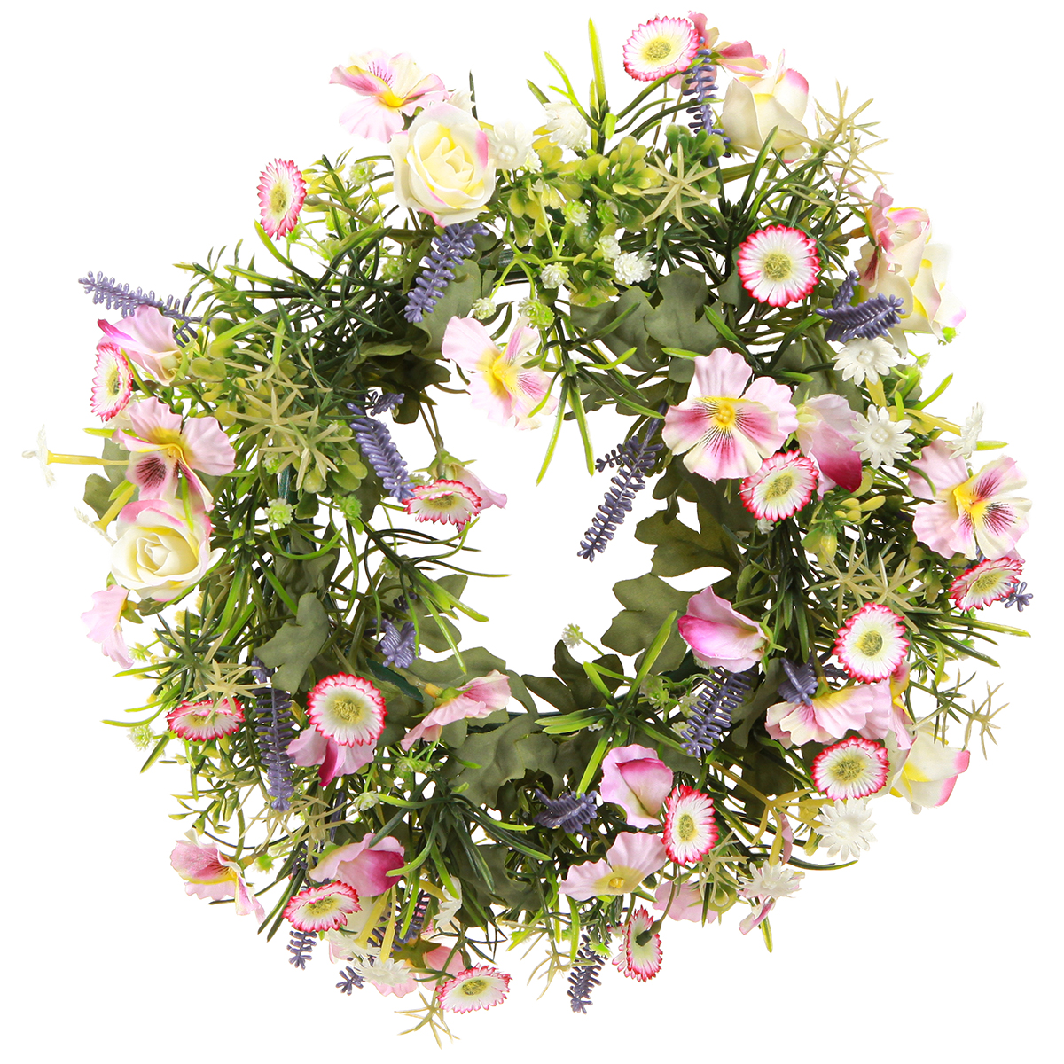 Blumenkranz künstlich Frühlingsblumen Creme Rosa Ø33cm