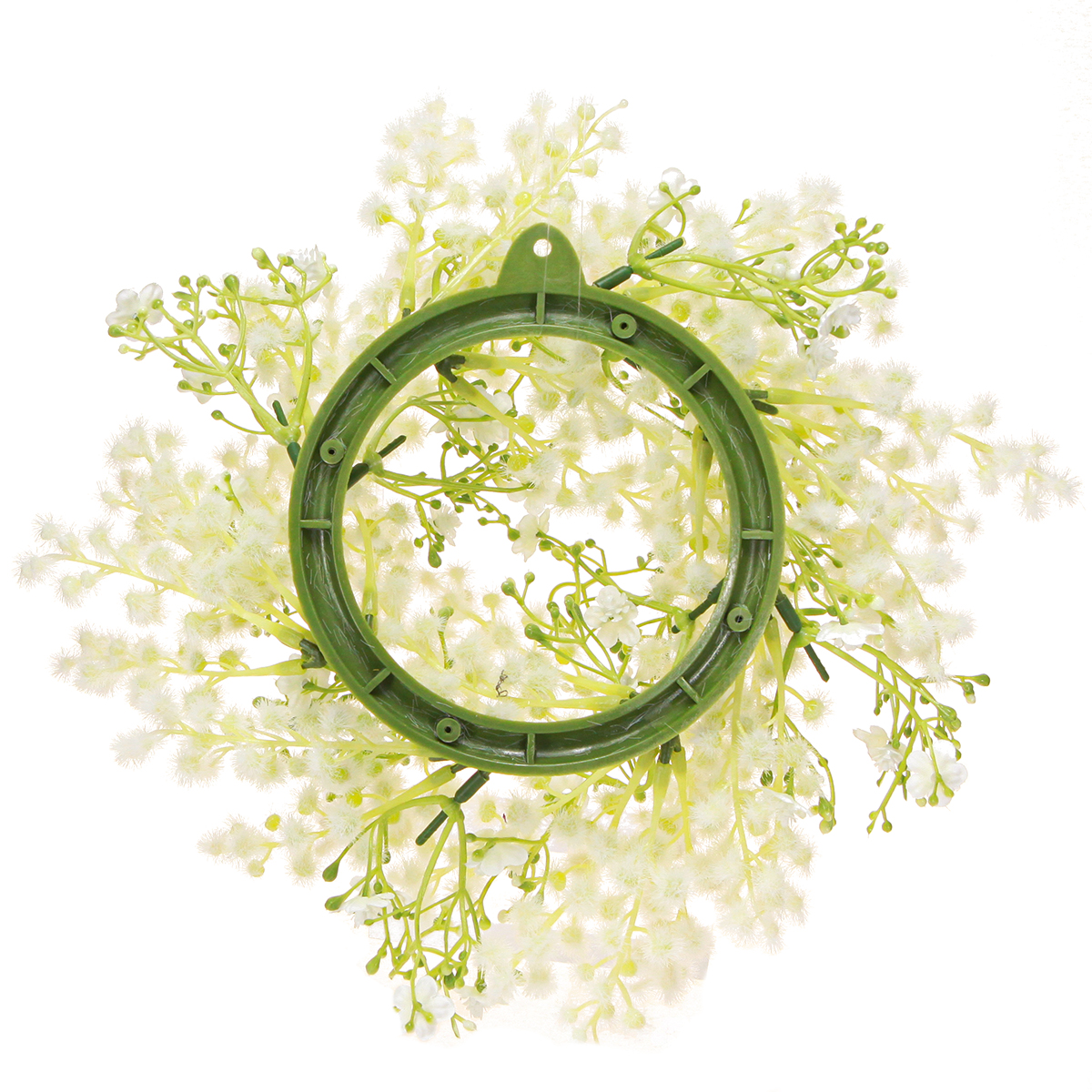 Couronne de fleurs mimosa artificielle crème blanc vert Ø25cm