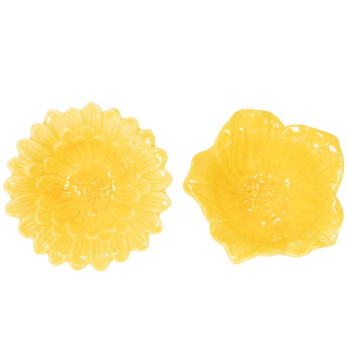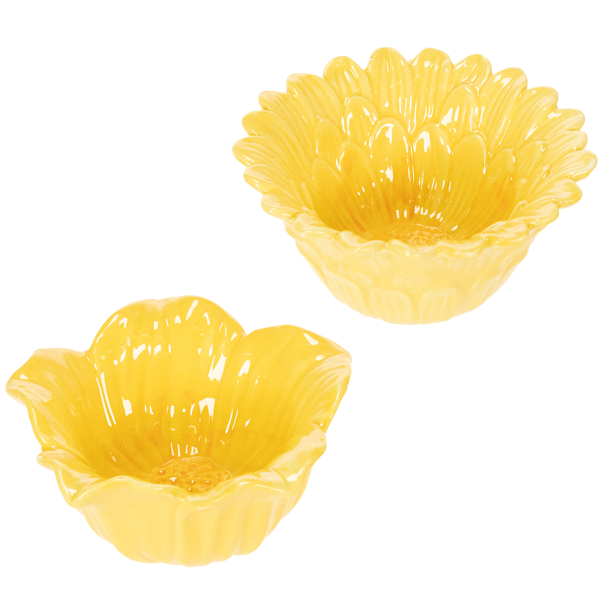 Chi non ama aggiungere un tocco personale alla propria casa con piccoli dettagli? Queste ciotole decorative in ceramica gialla sono l'accessorio perfetto per aggiungere un tocco di colore fresco e decorare con stile la tua casa. Con il loro affascinante design floreale in un giallo vibrante e in ceramica di alta qualità, portano un tocco moderno direttamente nella tua casa. Perfette per composizioni floreali creative, una graziosa idea regalo o semplicemente per esporre piccoli oggetti decorativi. Ma attenzione: questi piccoli pezzi accattivanti non sono adatti al contatto con gli alimenti. Immagina le ciotole piene di fiori secchi, usate come portacandele o come accessorio per le tue decorazioni primaverili in soggiorno: cattureranno sicuramente l'attenzione di tutti!