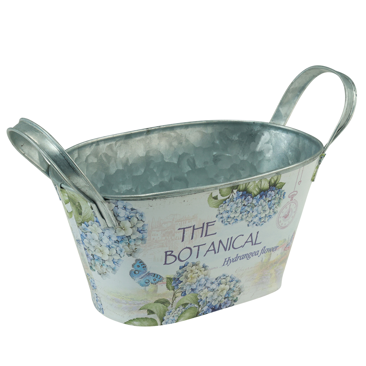 Portafiori con manici ortensie ovali in metallo 32×15×15cm
