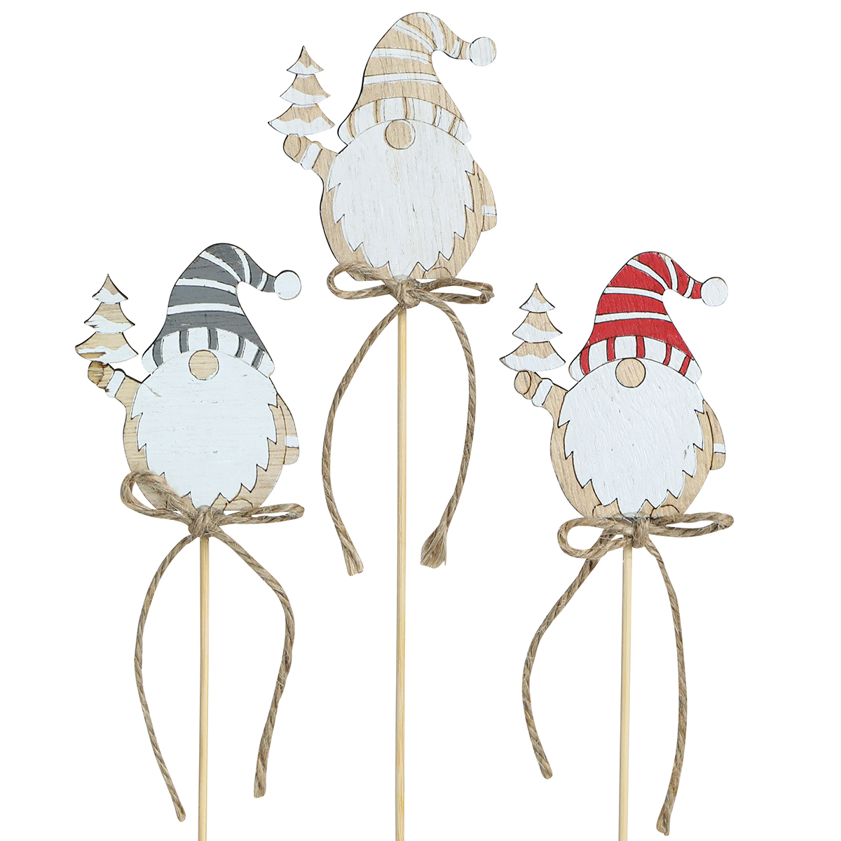 - 12 gnomi in legno in tre varianti di colore, dipinti su un lato