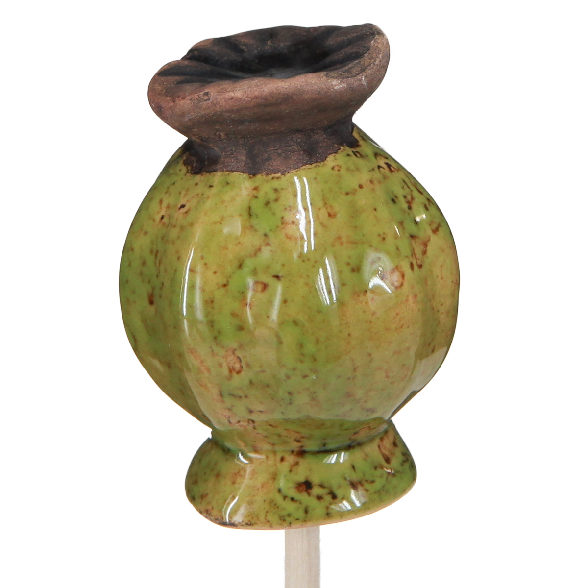 - 6 Keramik Blumenstecker in Form von detaillierten Mohnkapseln