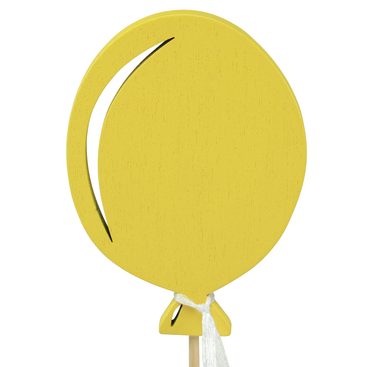 Jeder der Dekostecker-Luftballons in Gelb ist neben einem langen Holzstab mit einem weißen Band als Schnur versehen. Eine vielfältig einsetzbare Tischdeko für den Geburtstag der Groß und Klein Freude machen wird!