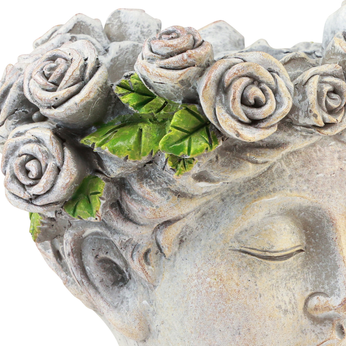 Vaso da fiori viso busto da donna testa di pianta aspetto cemento H18 cm