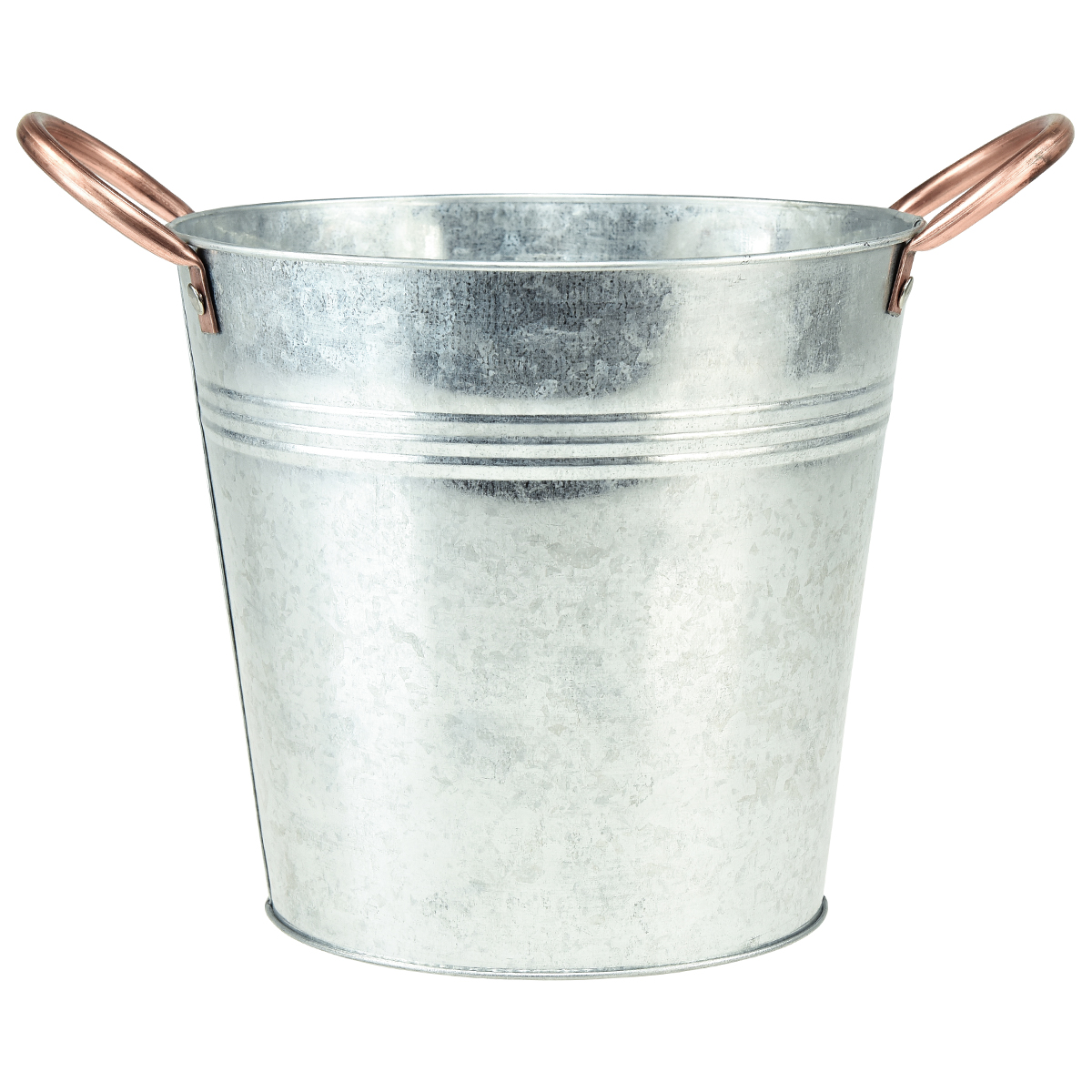 Die Griffe dieses kleinen Metalleimers schaffen in der Farbe Kupfer einen spannenden visuellen Kontrast zum silberfarbenen Deko-Eimer. Durch die verzinkte Oberfläche erhält der Pflanzkübel sogar eine leicht nostalgische Optik. Vor dem Bepflanzen ist es ratsam, das Metallgefäß mit Folie auszukleiden, um den Schutz des Eimers vor Korrosion zu gewährleisten.