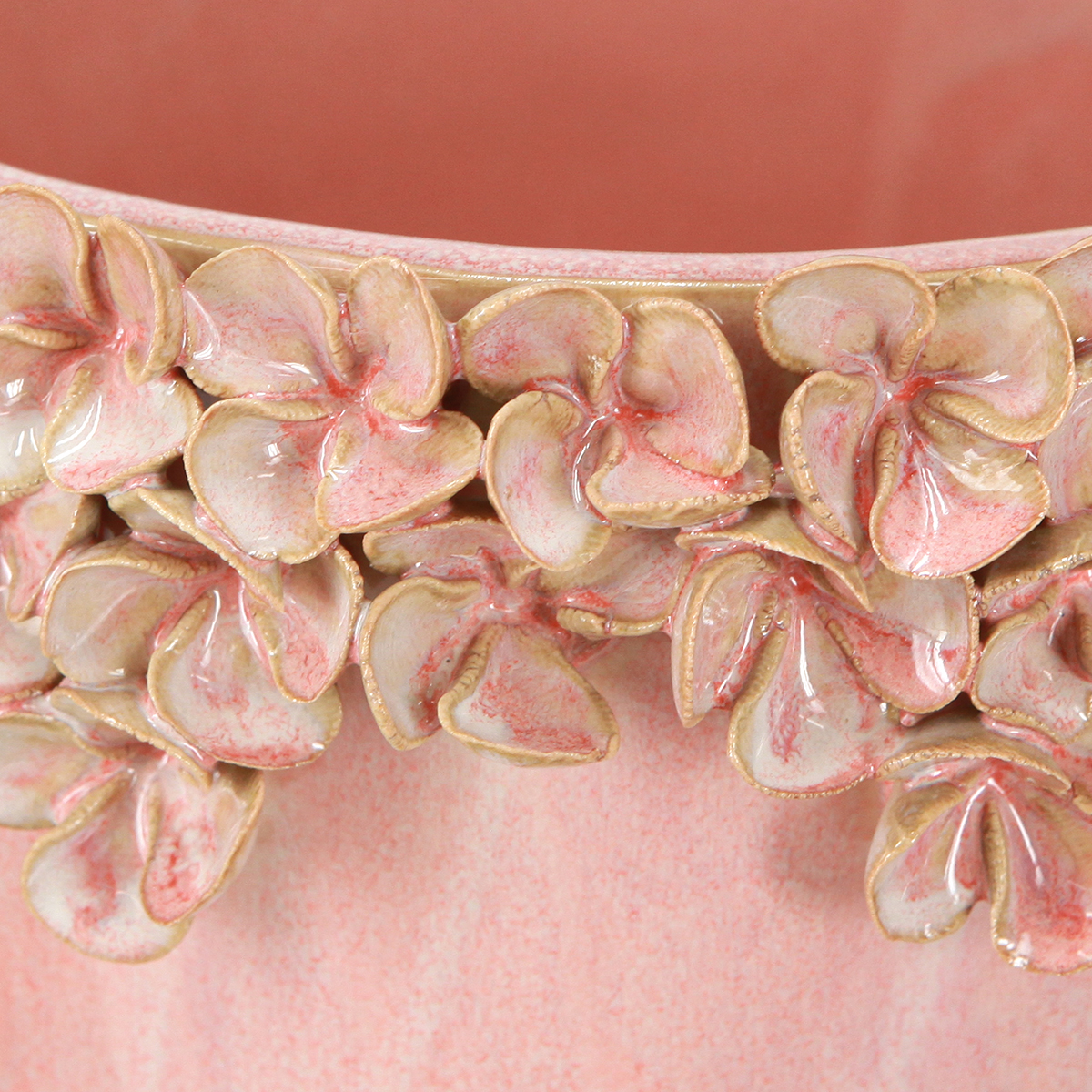 Vaso in ceramica con bordo floreale rosa Ø19cm H16.5cm
