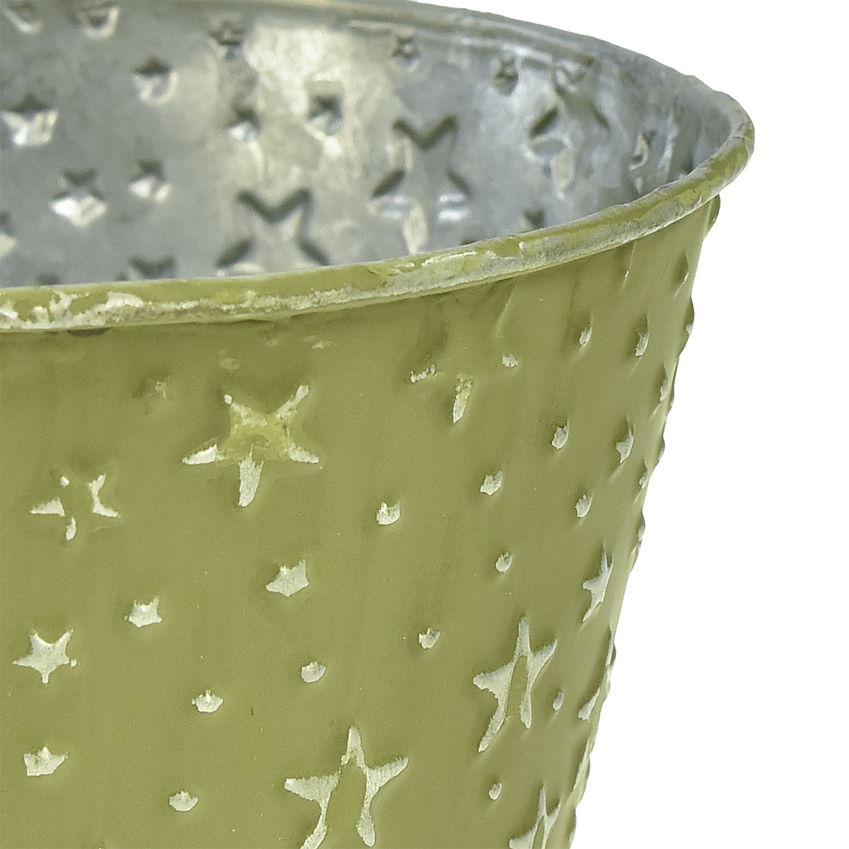 Pot de fleur jardinière métal étoiles vert argent Ø16cm