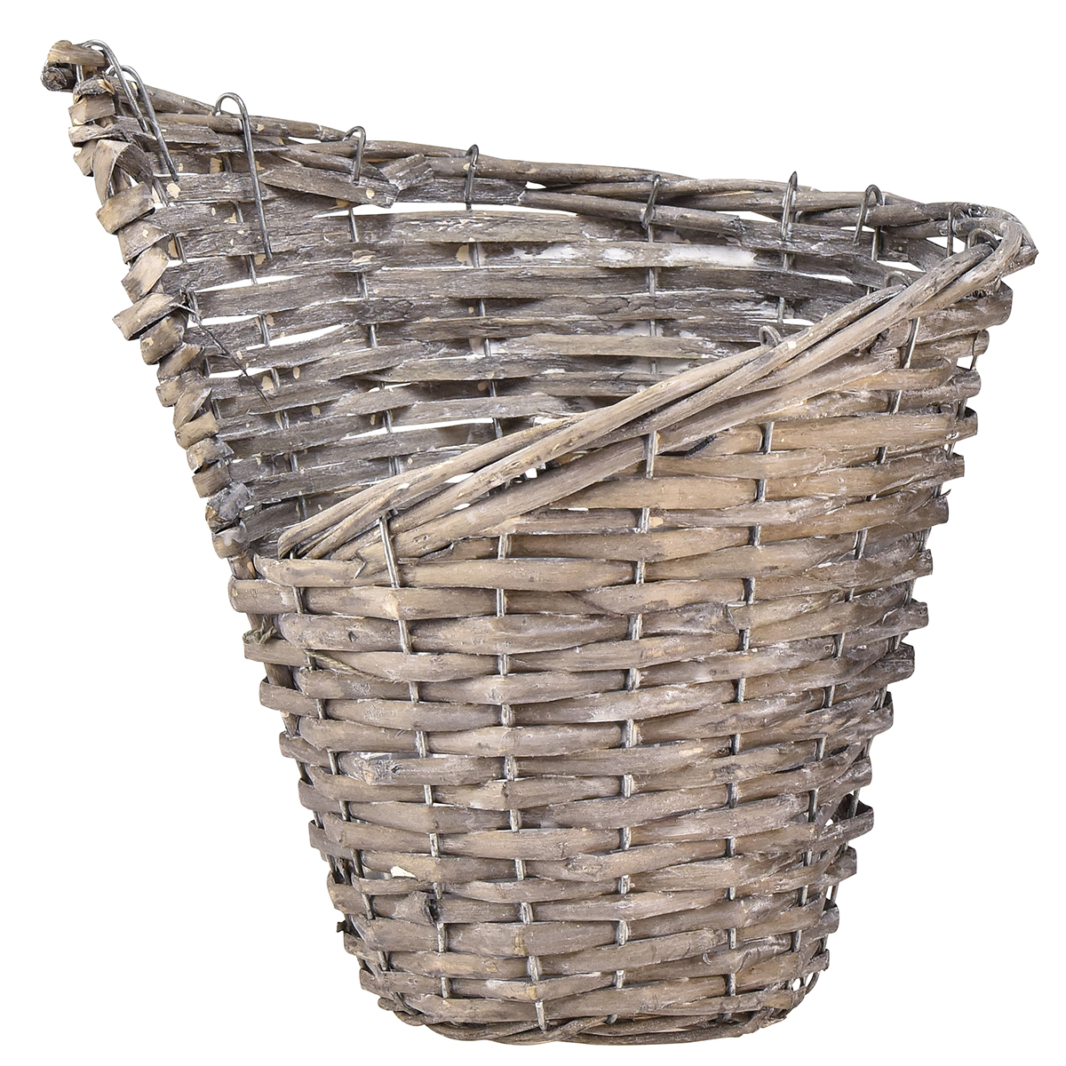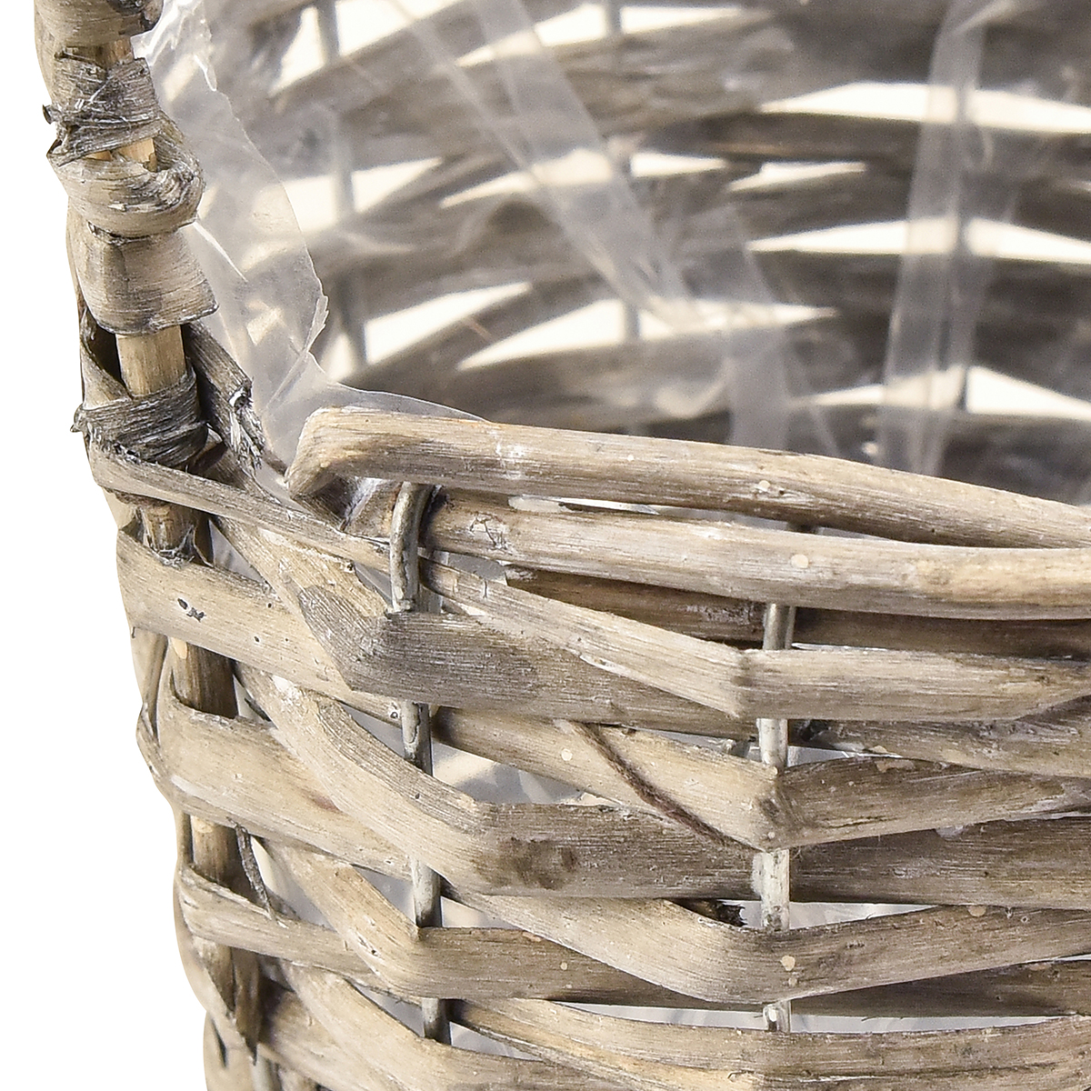 Dieser rustikale Weiden-Blumentopf überzeugt mit einem asymmetrischen Design – ganz im Sinne eines natürlichen und handgefertigten Charmes. Jeder geflochtene Pflanzkorb aus Weide besteht aus halbierten Weidenzweigen, die liebevoll um einen Gitterkorb aus Metall geflochten sind, wobei volle, runde Zweige als Zierde den Rand dekorieren. Die leichte Weiß-Waschung unterstreicht den Vintage-Look. Jeder Korb ist mit Folie ausgelegt, damit Sie gleich mit dem Bepflanzen beginnen können.