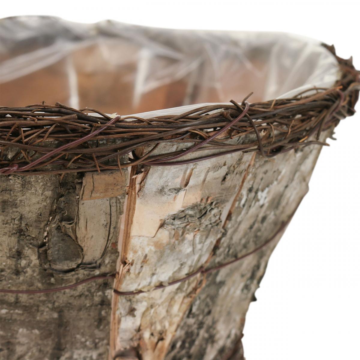 Produktname: Rustikaler Pflanztopf mit Birkenrinde und Reben in Holzoptik