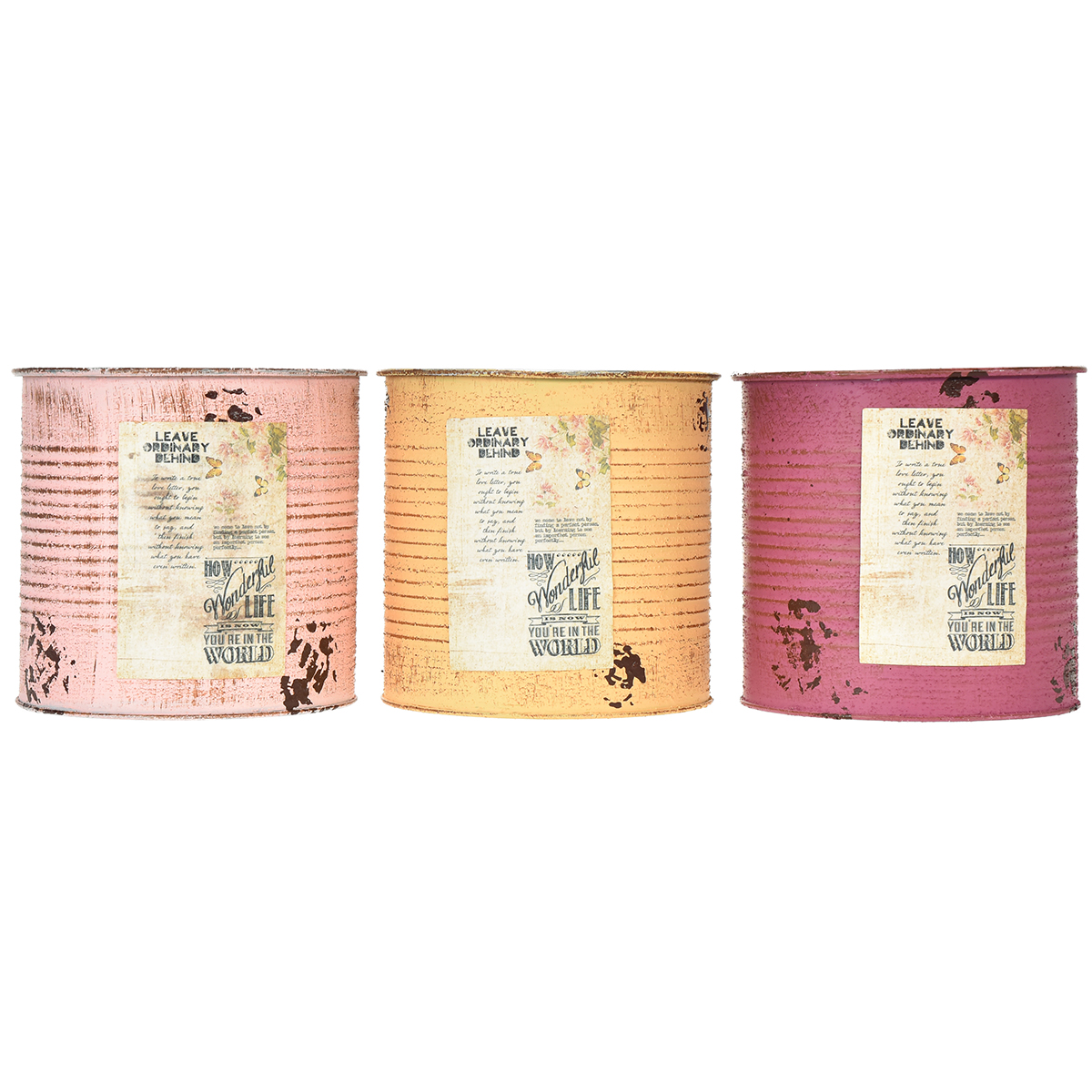 Set di 3 vasi/barattoli di latta in stile vintage.