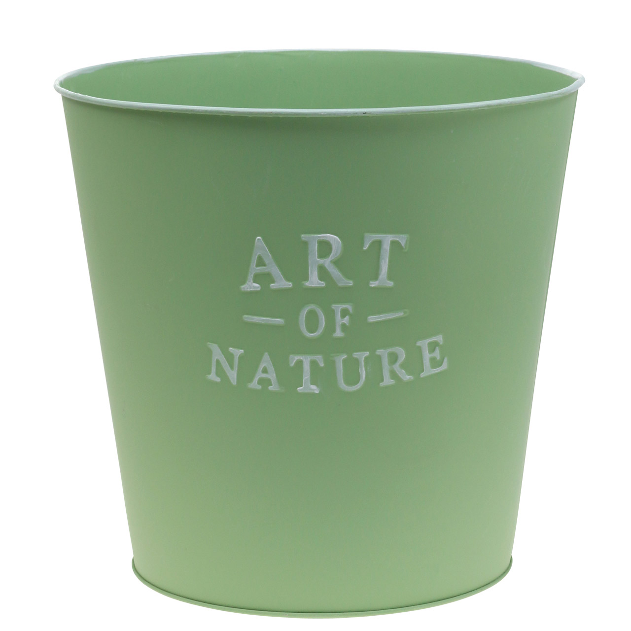 Der dekorative Zinktopf ist mehr als nur ein Pflanzkübel. Mit seiner besonderen Farbgebung und dem weiß gewaschenen Schriftzug "Art of Nature" wird der Blumentopf aus Metall zum dekorativen Mittelpunkt. Dabei ist er mit einem Durchmesser von etwa 22 Zentimetern und einer Höhe von etwa 21 Zentimetern ideal für vielfältige Pflanzideen.