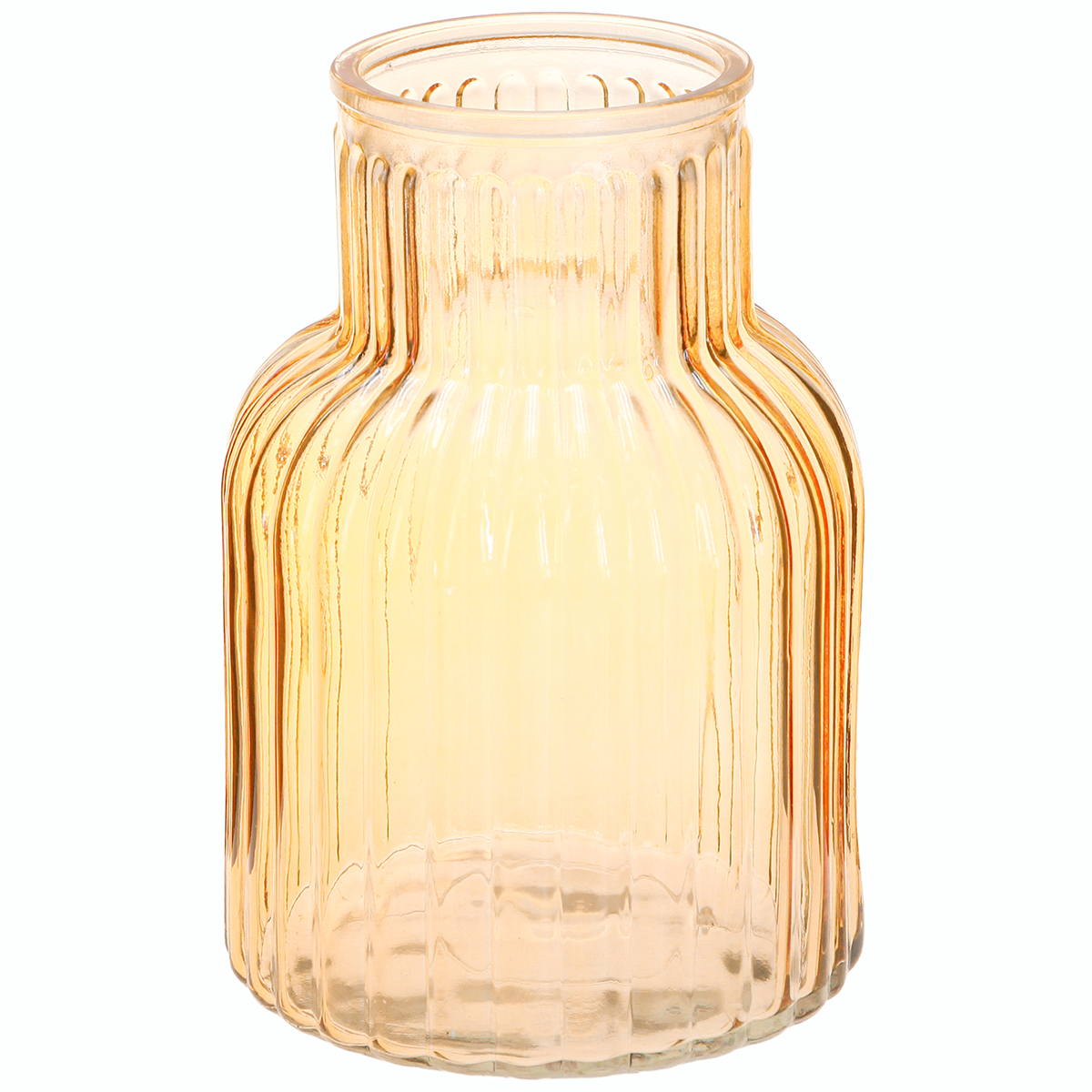 Vaso per fiori in vetro con scanalature retrò arancioni Ø13,5cm H20cm