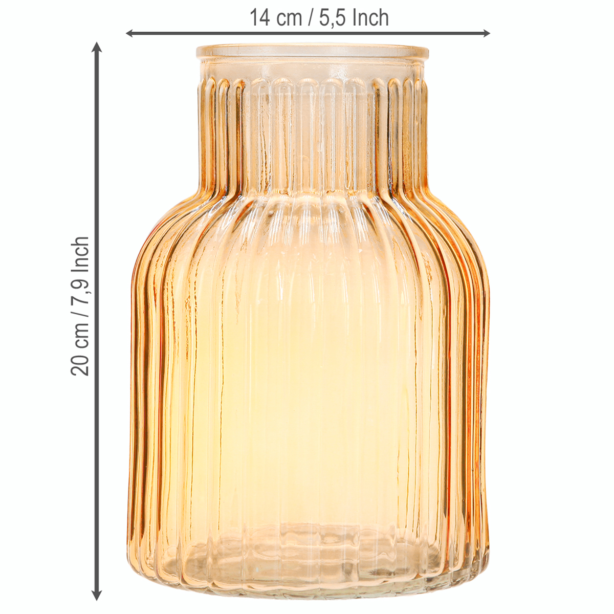 Il vaso per fiori in vetro con le sue caratteristiche scanalature e la calda tonalità arancione è un vero e proprio elemento di attrazione per i vostri interni. Con un diametro di circa 13,5 cm e un'altezza di circa 20 cm, offre la superficie di presentazione perfetta sia per i fiori freschi recisi che per quelli secchi. Il design retrò ricorda i tempi passati e conferisce a ogni stanza un certo tocco di nostalgia. Questo vaso in vetro è ideale per gli stili di arredamento vintage e retrò, ma può essere utilizzato anche come elegante contrasto negli interni moderni. Abbinate questo vaso ad altri elementi decorativi nei caldi colori autunnali per ottenere un quadro generale armonioso e invitante. Aggiungi atmosfera e fascino al tuo soggiorno o al tuo ufficio con questo versatile vaso decorativo di Floristik24.