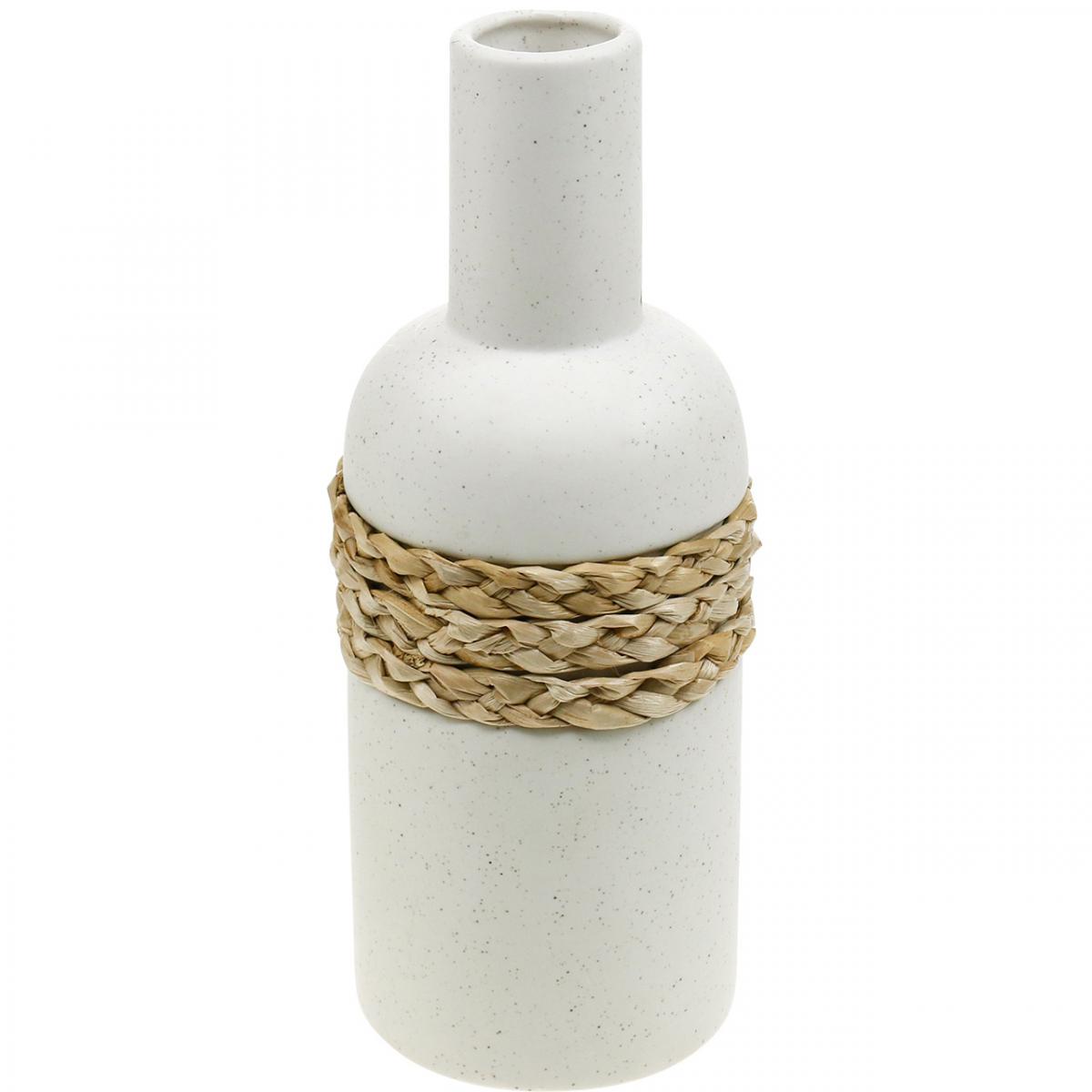 Produktname: Blumenvase weiß Keramik und Seegras Vase Tischdeko H22,5cm