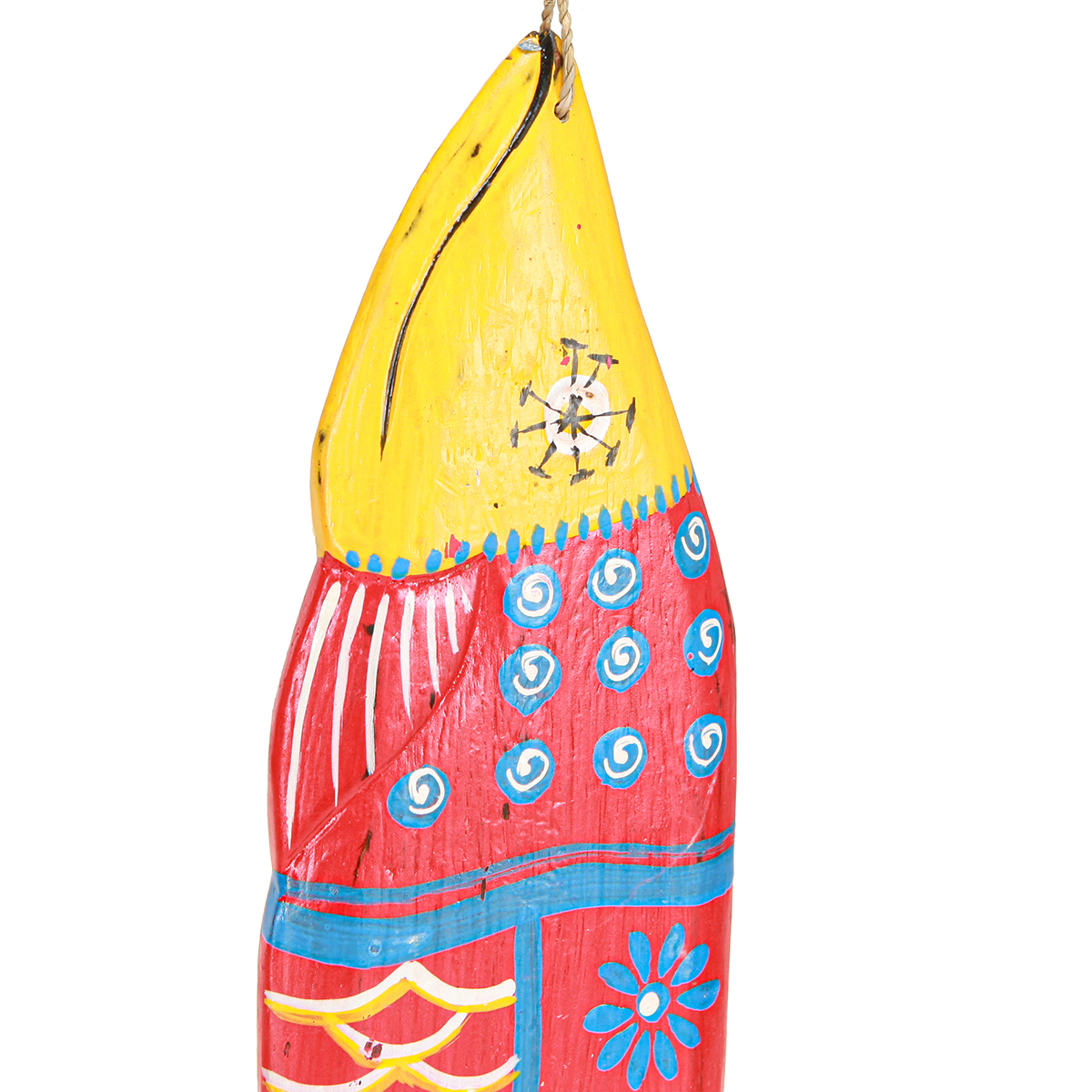 Decorazione a forma di pesce in legno colorato da appendere rosso blu assortiti 38cm 2pz