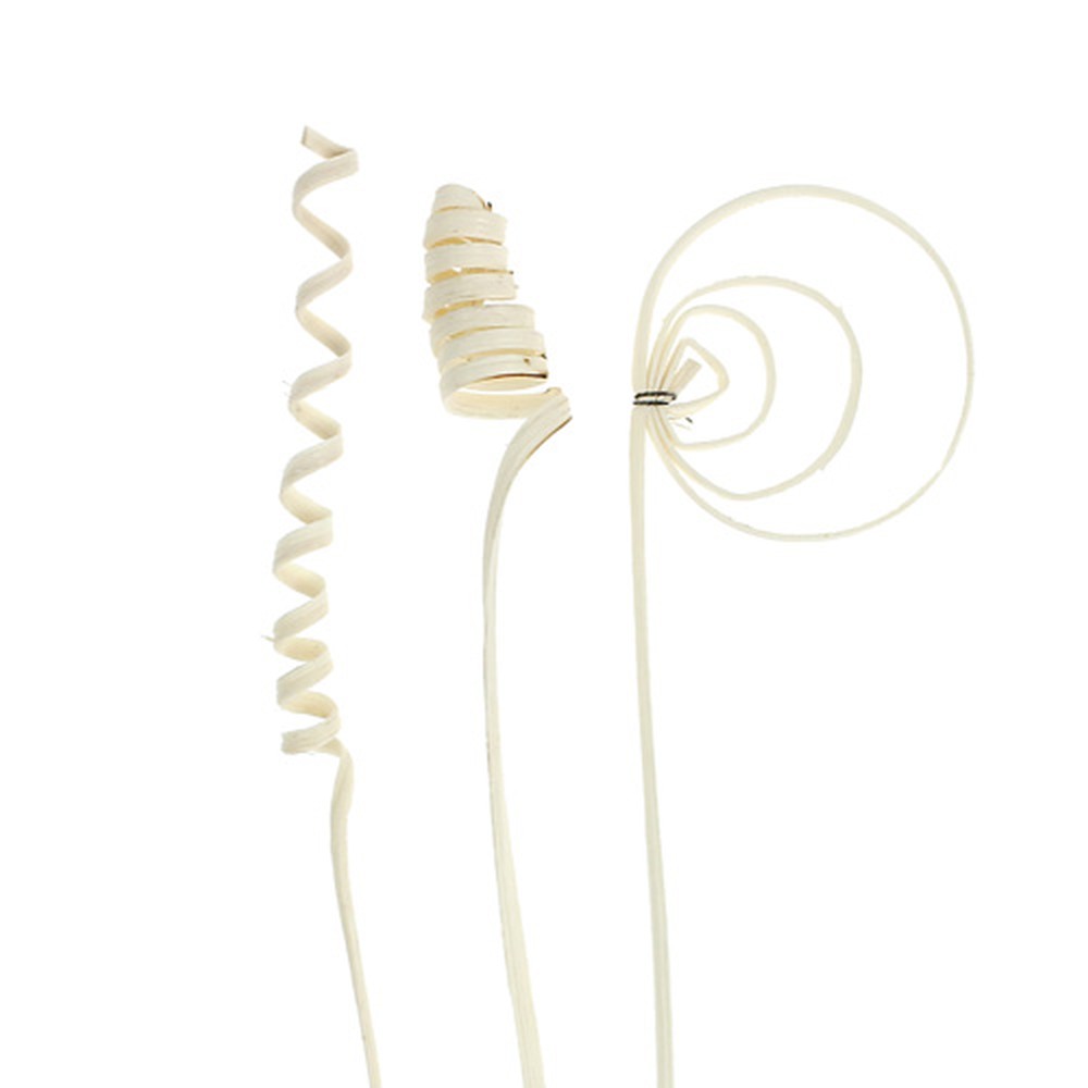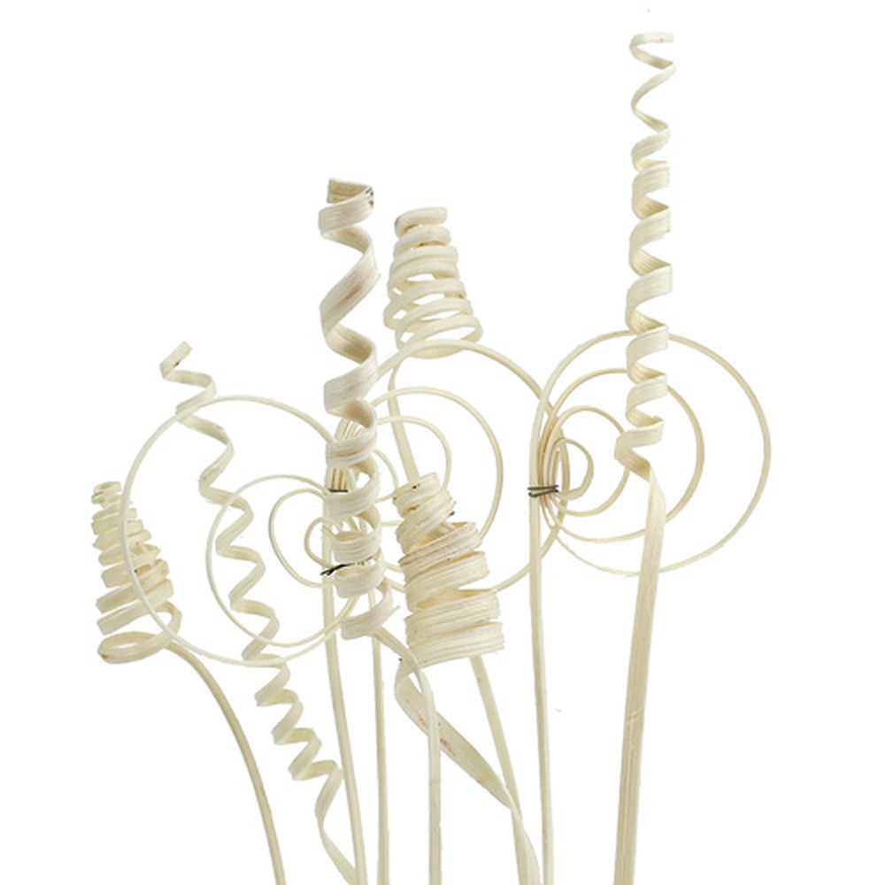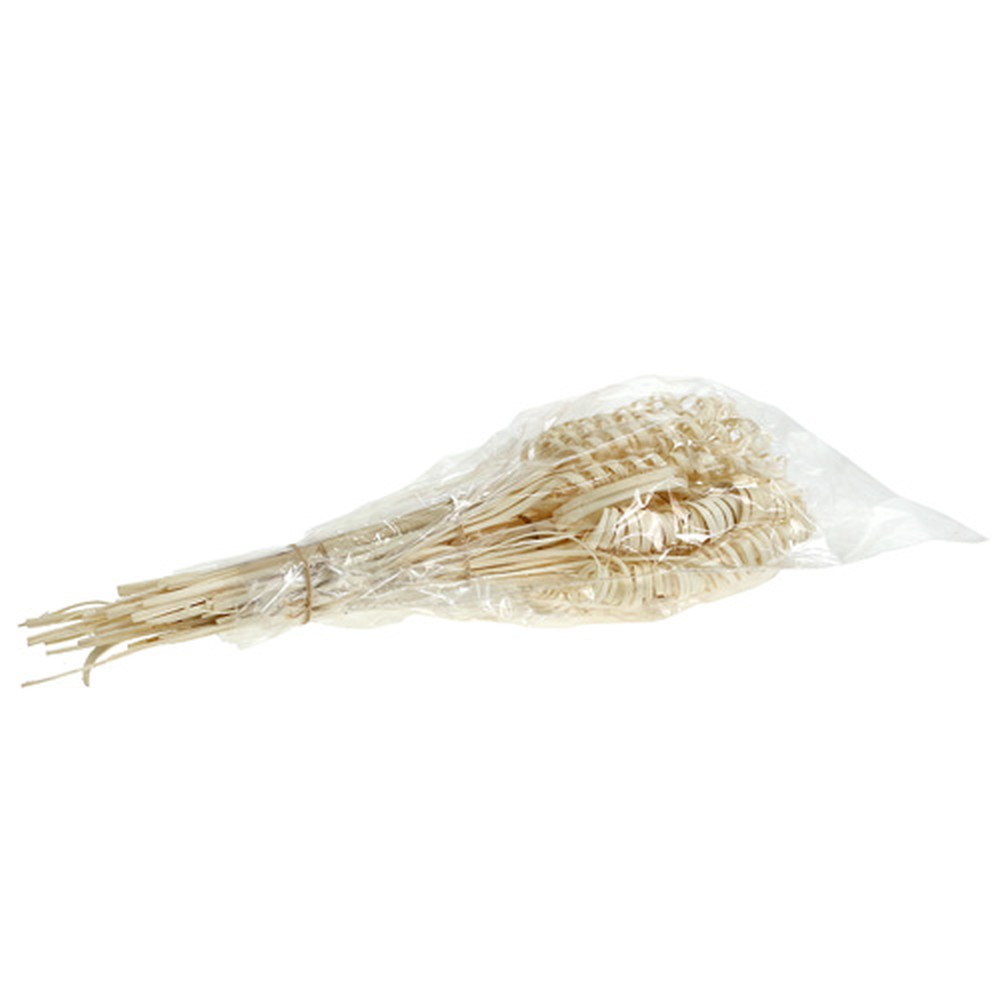 Notre assortiment de mini tiges appelées Cane Coil comporte 75 spirales en bois blanchies qui se déclinent en trois variétés. Comme il s’agit de produits naturels, ils ne sont pas identiques en tous points et leur longueur peut donc osciller entre 30 et 45 centimètres.