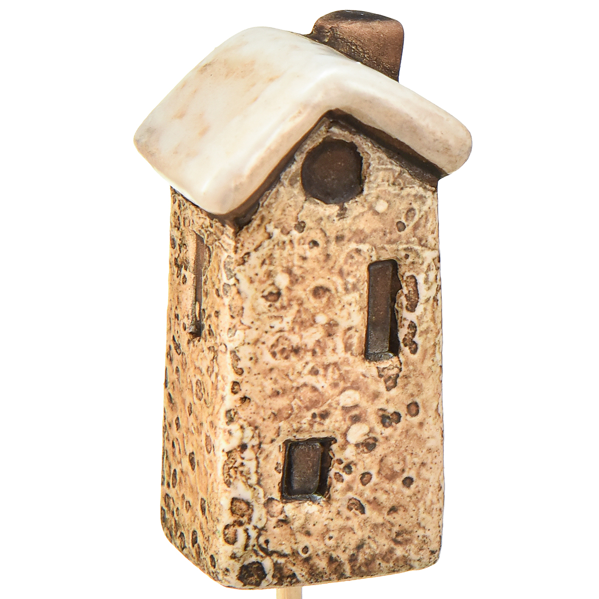 Charmantes Keramikhaus-Dekoration auf Stäben – Verschiedene Brauntöne, 6 cm – Idyllische Gartenstecker – 6St